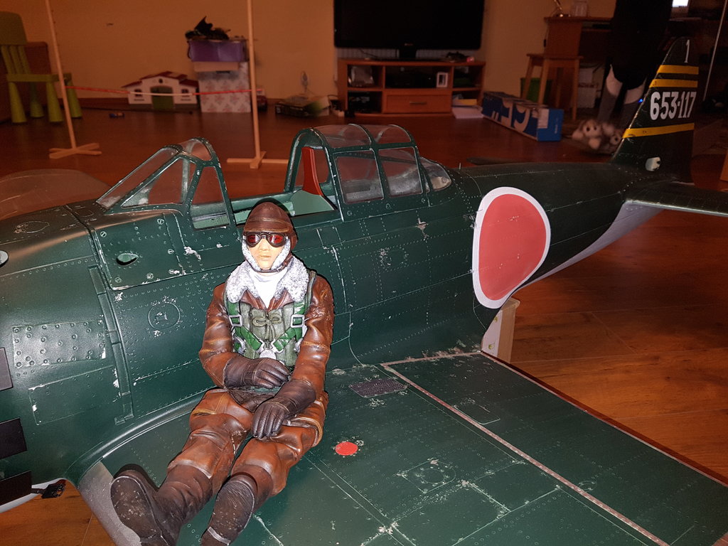 Aby pilotowi nie przyszły do głowy myśli i misje samobójcze został posadzony do samolotu jako dowódca 653 Grupy Lotniczej Marynarki Wojennej Japonii na lotniskowcu Zuikaku ? Wygląda na zmartwionego bo to Październik 1944 roku i uświadomił sobie że wojna jest przegrana.