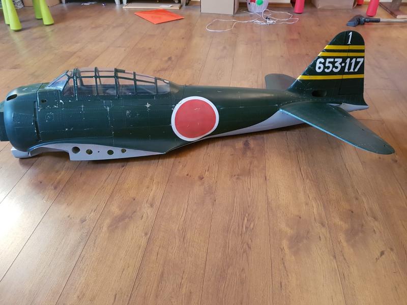 Tak, mam Zero z Top RC. Na razie "nitowałem" i przemalowałem kadłub. Laminat cienki i trzeba uważać żeby nie podziurawić. Żeberka w skrzydłach też z cieniutkiej balsy i pękają po lekkim naciśnięciu- trzeba wzmocnić. Ogólnie za cenę prawie 1000€ jestem trochę rozczarowany, ale porównując z Zero Top Flite'a to i tak nie jest źle bo to w końcu pełny laminat. Zamierzam pochować wszystkie popychacze sterów do środka bo uważam, że przy tych rozmiarach modelu to nie przystoi aby tak ordynarnie wystawały na zewnątrz. Niby ARF ale trochę pracy mnie czeka żeby przypominał prawdziwe Zero... Na razie wygląda tak Jak zrobię więcej to może założę nowy temat