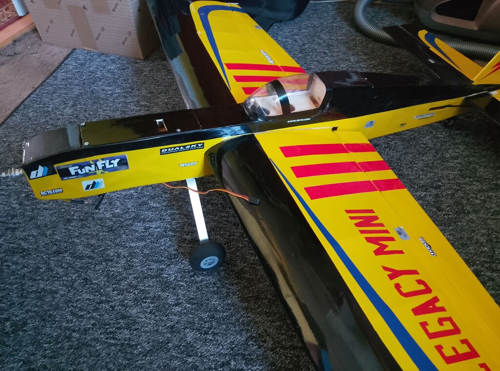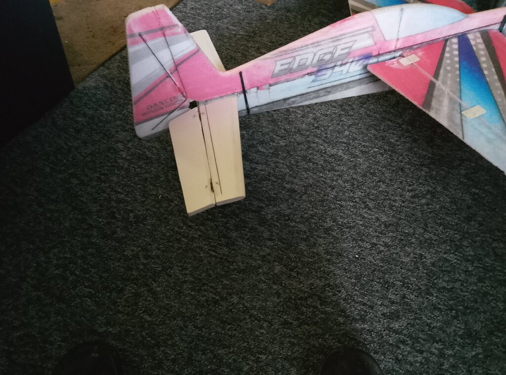 Pomimo chwilowego załamania po informacjach o wyniku rezonansu magnetycznego wracam do latania modelami na uwięzi . Obecnie latam modelem odbudowanego Juniora i Edgem 540 przerobionym z modelu RC . Niestety znowu nie mam gdzie latać bo okazało się , że boisko w Porosłach okazało się za wąskie do linek 18 metrowych na których lata Junior . Z tego powodu jeżdżę raz w miesiącu do Pawła do Grajewa . A to zdecydowanie za mało . Choć z drugiej strony rady Pawła są bezcenne . Edge dostał nowy statecznik poziomy zgodny z regułami F2B . Do poprawnego latania wymagał cofnięcia mocowania orczyka i wyprowadzenia linek oraz regulacji wyważenia jak i zamiany silnika na większy klasy 3536 . Model waży 780 gramów . Obecnie dostał zasilanie 4 S LiPo bo latał za wolno . Z całą odpowiedzialnością mogę go polecić na pierwszy model na uwięzi . A koszt modelu w wersji RC to obecnie 310 zł . Trzeba dorobić orczyk jak w modelu Flasha CL oraz statecznik . Wymiany wymaga też podwozie na duraluminiowy płaskownik z marketu budowlanego . Odczucia z pilotażu są jak z większego modelu jakim jest Junior , choć model Edga nie chce tak długo szybować przy lądowaniu jak Junior . Naprawa bajecznie prosta klejem cyjanoakrylowym z przyśpieszaczem .