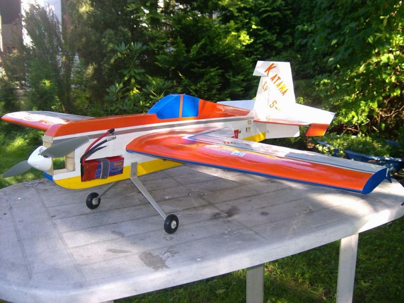 Mój ma rozpiętość 125 cm i pusty waży 1000 g . Gotowy do lotu waży 1700g . Wagę twojego konstruktor przewiduje 1800 - 2000g do lotu . Mój wzorowany był na katanie Tower Pro , która do lotu ważyła 2600g z silnikiem spalinowym a latała miodzio na swój specyficzny sposób . Figury kręciła w miejscu . Mojego napędza silnik wielkości 30-25/10T o 720 obrotach na Volt , wadze 180 g o wymiarach średnica 36 , długość 46 mm . Pakiet 4 S liPo , śmigło 15/8 . -