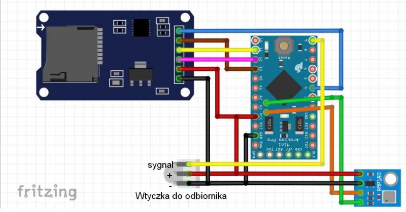Swietny opis. Filozofii nie ma, program ma dwa czlony: odczyt wysokosci - zgapiony z przykladu na korzystanie z bmp180 oraz zapis z przykladu zamieszczonego w arduino na 'datalogger' -zapis na SD jedyne co trzeba zmienic w kodzie z powyzszego linku to czestotliwosc zapisu, no i ewentualnie dodac zegar czasu rzeczywistego i jakies filtrowanie. Graty na aliekspress (arduino nano, slot na micro sd i bmp180) z wysylka do domu wychodza okolo 3euro + karta SD jakies 1,5euro zasilanie 5v prosto z odbiornika kablem obcietym od starego serwa powodzenia