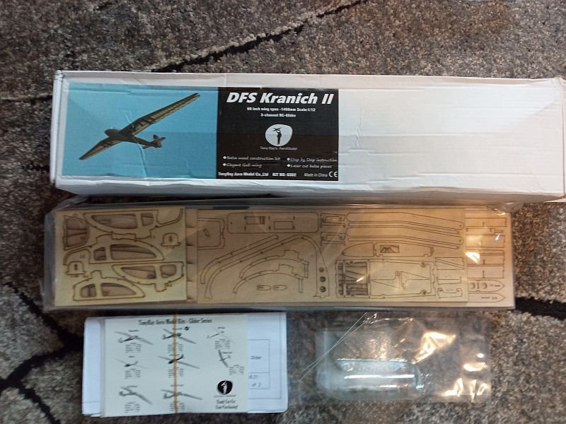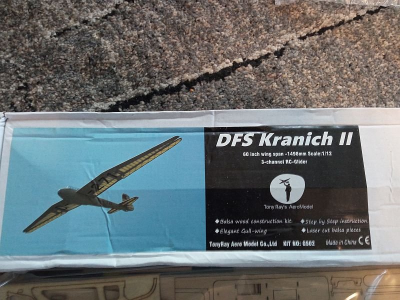 Taki model na sprzedaż: Specyfikacje: Nazwa marki: Tony Ray's AeroModel Nazwa przedmiotu: Mini Kranich Skala: 1/12 Materiał: drewno Blasa Rozpiętość skrzydeł: 60 cali / 1498 mm Długość kadłuba: 645mm Powierzchnia skrzydła: 16,2 dm2 Waga lotu: 320g-350g Zalecane części : Nadajnik RC z co najmniej 3 kanałami 5g mini serwa*4 Cena 389 zł plus poczta lub odbiór osobisty.