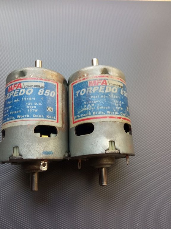 Używane silniki szczotkowe na 12V. Silniki pracowały w modelu pływającym. Wszystko sprawne. Pobór prądu na biegu luzem identyczny dla obu silników -1,9 - 2 A. Sprzedaję komplet 2 sztuki . Cena 99zł plus poczta.