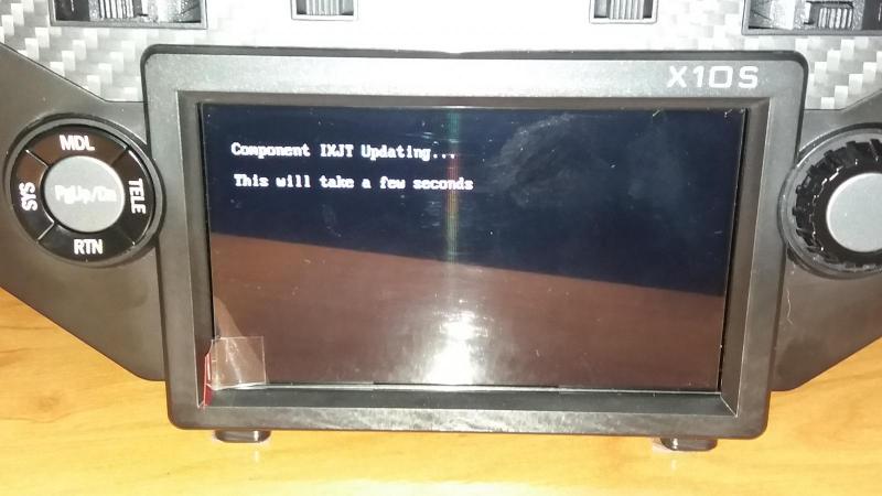 Niestety po włączeniu wyświetla się ponownie napis: "Component IXJT Updating... This will take a few seconds". Po wyciągnięciu z nadajnika karty SD w folderze FIRMWARE nie ma już pliku: X10_mode2_NEU_1203_frtx.bin.