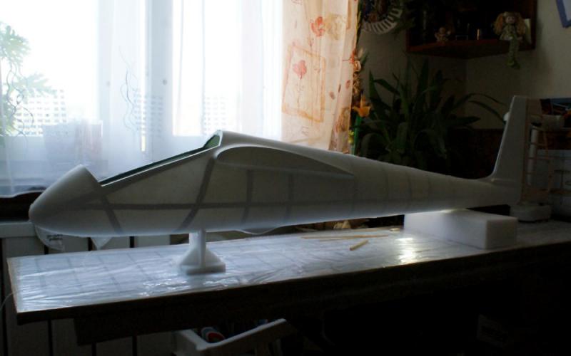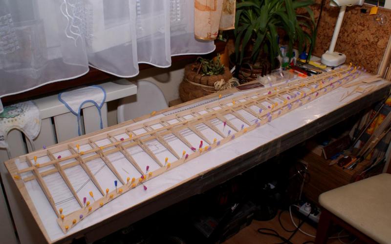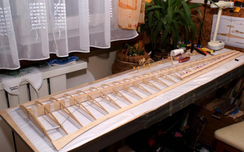 Wojtek, spokojnie prace nad Kanią idą (w tle), troszkę mi się "przejadła" i muszę odpocząć. Dźwigar zamknięty, zaczynam owijki i może uda mi się jutro pokazać kadłub (mam nadzieję że już wszystko podeschło).