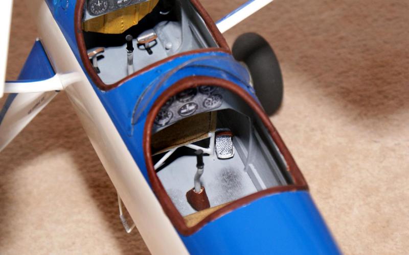Udało mi się trochę powalczyć z przednią kabiną. Zrobiłem zarys zbiornika paliwa i pedały. Koła niestety są do latania z trawy , ale może kiedyś dam mniejsze. -
