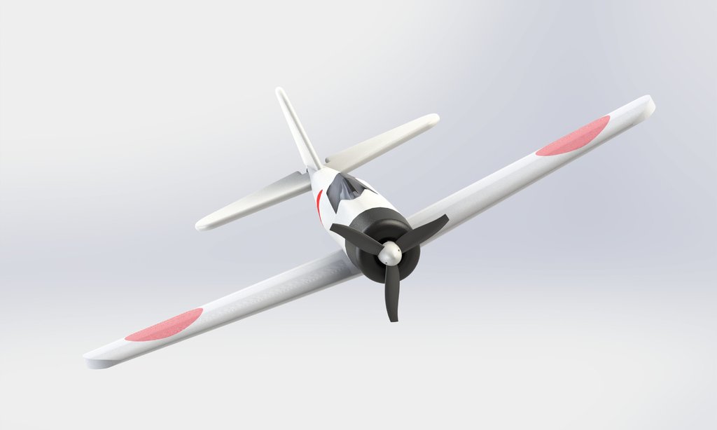 Zdecydowałem się na poniższe malowanie. Spędziłem jeszcze chwilę w Solidworksie by nieco rozbudować projekt i zrobić kolorową wizualizację. Do modelu doszła kabina, trochę detali i oczywiście malowanie. Brakuje jeszcze silnika wraz z śmigłem. Dodatkowo można nanieść kilka szczegółów do pełniejszego odwzorowania modelu. Na tym etapie pokusiłem się o taki render. Niedługo ciąg dalszy budowy