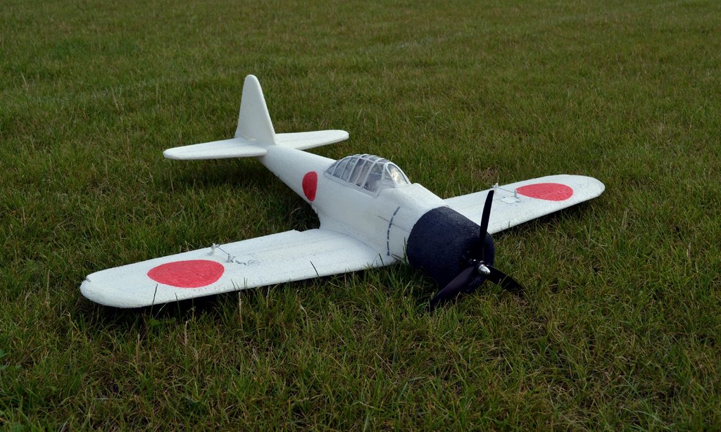 Dzięki Silnik 1400 KV 180W, śmigło 8x4. Z pakietem 3s 1300 mAh, śmigłem trzyłopatowym i stałą piastą, masa do lotu wychodzi około 380g. Mocując do walki kabinę z EPP, dwułopatowe śmigło i piastę prop saver być może udałoby się jeszcze kilka gramów zaoszczędzić.