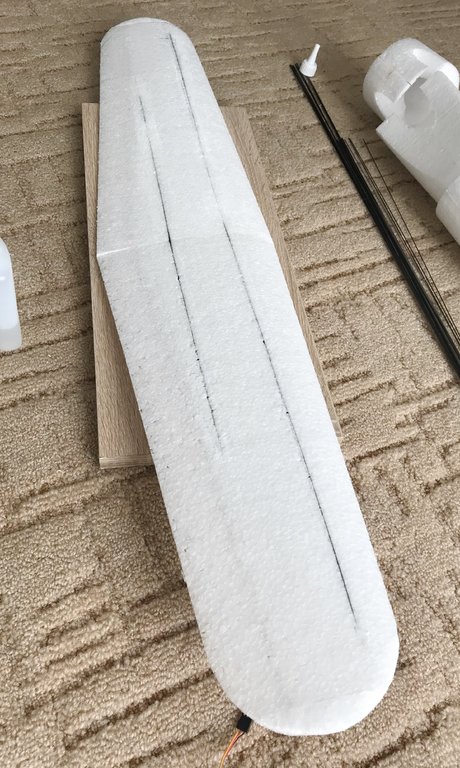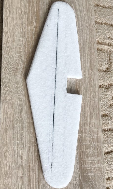 Niestety nie zważyłem samych pianek. Dokonam takiego pomiaru przy okazji wycięcia kolejnego egzemplarza. Waga gotowego modelu z pakietem 3s 2200 mAh to niecałe 560g. Bez pakietu wychodzi około 420g. Na te gabaryty modelu myślę, że wynik jest w porządku. Co do oblotu to odbył się on już dziś rano. Wszystko poszło bez problemów, model lata tak jak planowałem. Bardzo dużych prędkości nie osiąga, za to jest pewny i stabilny również przy małych prędkościach. Ciężko go przeciągnąć, dobrze szybuje. Można się nim pobawić na dużych przestrzeniach, ale także sprawdzi się jako parkflyer. Mam trochę materiałów z lotu, przejrzę je później i jeszcze dziś się podzielę.