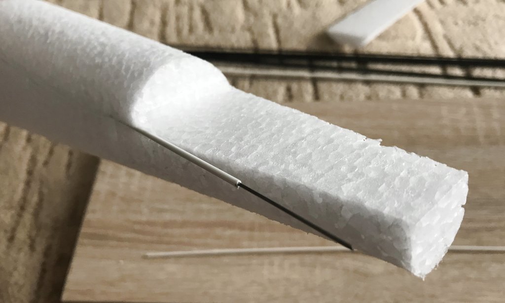 Pora na kolejny wpis. Usztywniłem skrzydła prętami węglowymi i dociąłem dodatkowo końcówki skrzydeł z arkusza o grubości 2cm. Serwa lotek zazwyczaj montowałem od góry, ale w tym przypadku skrzydła przy lądowaniu raczej nie będą dotykały podłoża, więc serwa wkleję od spodu. Wyciąłem też wręgę silnikową i przygotowałem sam motor. Moc to 180W przy 930KV. Przednia część kadłuba też już sklejona. Stateczniki zostały wycięte na płasko z przygotowanego wcześniej arkusza o grubości 1,2cm. Jak widać, przednia część osłony silnika została już wstępnie zaokrąglona i oszlifowana. Reszta kadłuba też prawie gotowa. Umieściłem wewnątrz bowdeny i wkleiłem serwa steru wysokości i kierunku. Przeoczyłem zdjęcie samego usterzenia pionowego. Będzie widoczne na następnych fotografiach. Nie kleiłem jeszcze go w całość, ale złożyłem na sucho i przytrzymałem szpilkami. Tak wygląda w porównaniu z większą wersją. I też coś na zewnątrz W porównaniu ze starym ME109 w tym samym rozmiarze