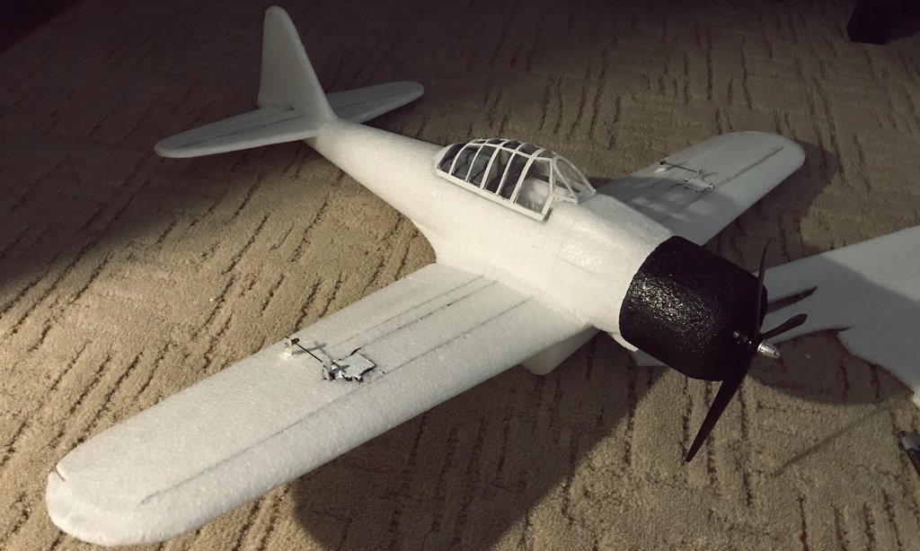 Hellcat już sklejony. Wszystkie stery połączone, silnik również na swoim miejscu. Śmigło na razie dwułopatowe, później zmienię na trzyłopatowe. Doszła też piankowa kabina. Zostanie pewnie tak do oblotu, a później popracuję nad przeszkloną wersją. W zasadzie można już spróbować go w locie, jednak przed tym chciałbym dołożyć kilka detali oraz pomalować model.