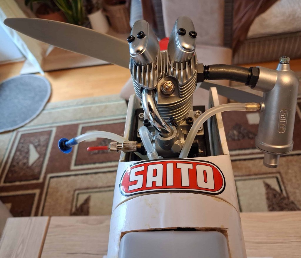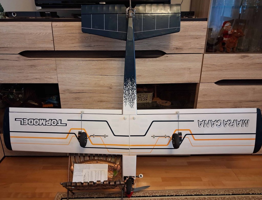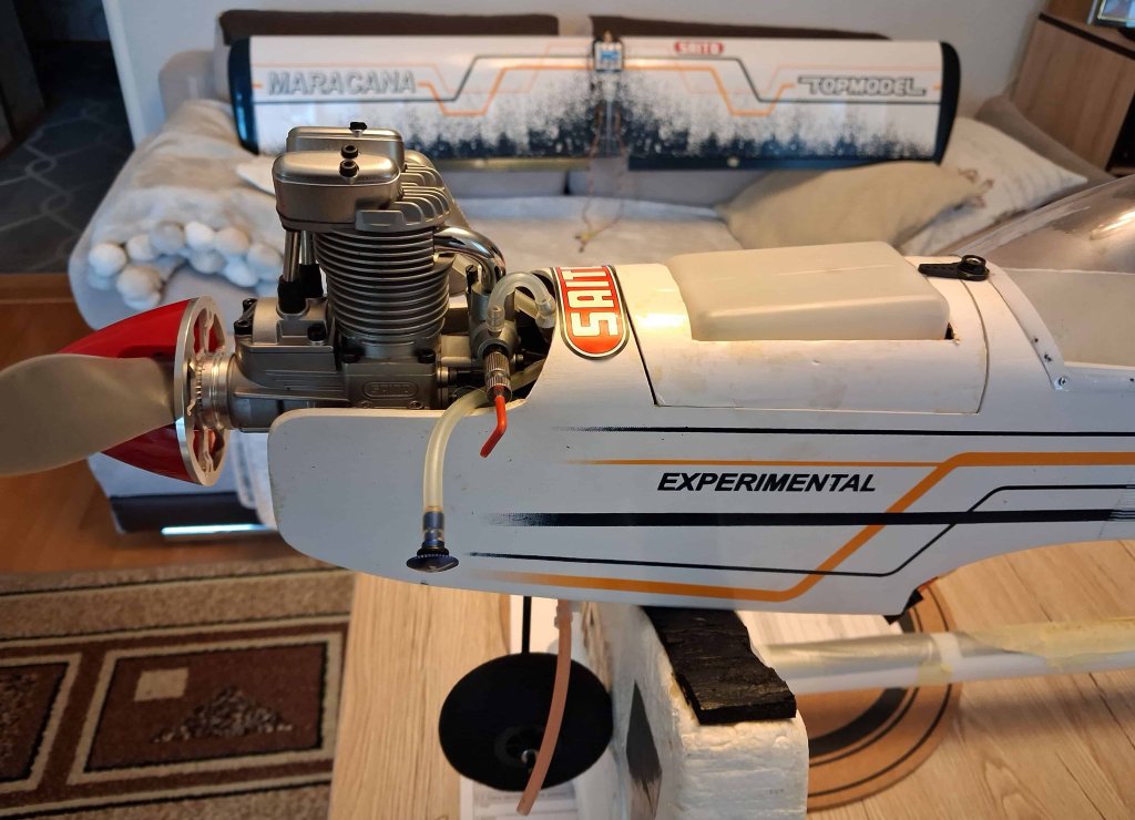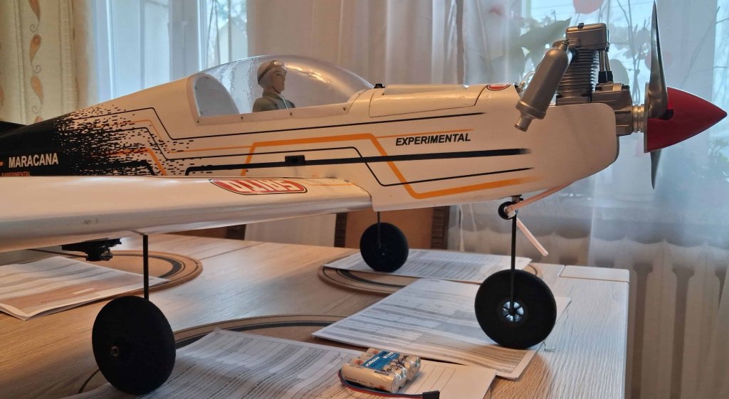 Dzień dobry, Drodzy Koledzy - z uwagi na nadmiar modeli latających RC w moim hangarze (zasób ponad 20 szt.) i niedostatek miejsca, oferuję do nabycia model dolnopłata: VQ MARACANA 40 LOW WING Trainer 160cm z silnikiem Saito FA-62B - z pełnym wyposażeniem, bez odbiornika - w cenie 1388 zł zł. Koszt zakupu nowego modelu i nowego silnika wraz z z nowymi elementami wyposażenia i materiałami montażowymi to ok. 2776 zł - bez koszów robocizny! Oferuję nowy, zmontowany - w pełni wyposażony i gotowy do lotu model z nowym: silnikiem, śmigłem, kołpakiem, układem paliwowym (armaturą zbiornika), nowymi serwomechanizmami, nowym akumulatorem zasilającym i nowym wyłącznikiem - w cenie stanowiącej połowę (50%) kosztów! Stan modelu - dokładnie jak na zdjęciach i w poniższym opisie (pkt. 1. - 12.)! Odbiór modelu - na miejscu w Jaśle (w mieszkaniu, względnie na naszym Lądowisku IKAR Jasło, gdzie istnieje możliwość uruchomienia silnika, sprawdzenia układu sterowania i kołowania - przy sprzyjającej pogodzie). Nowy silnik Saito FA-62B ze śmigłem APC 12X6" i kołpakiem z podstawą duralową zainstalowałem bezpośrednio w modelu - w celu wstępnego dotarcia na ziemi i wykonania oblotu. Wstępne dotarcie silnika (zgodnie z zaleceniami producenta SAITO w instrukcji) i kilkuminutowy oblot z użyciem paliwa: Optimix 12 – 12% nitro 4-Stroke / 20% KLOTZ przebiegły wzorcowo (paliwo o składzie: Metanol: 68%, Nitrometan: 12%, Olej syntetyczny KLOTZ: 20% - mieszanka paliwa do 4-suwów zawierająca 12% nitrometanu i 20% w pełni syntetycznego oleju Klotz, paliwo przeznaczone do silników samolotowych, śmigłowcowych i łodzi). Silnik uruchamia się błyskawicznie i pracuje nienagannie, model jest prawidłowo wyważony i zachowuje się w locie znakomicie! Obecnie model jest w pełni gotowy do lotów. Do eksploatacji sugeruję nadal to paliwo, także po zupełnym dotarciu silnika KOSZTORYS w [ZŁ] - bez kosztów robocizny: 1. Model VQ MARACANA (klasa 46 EP-GP) ARF - VQ-Models - 895,94 zł https://modele.sklep.pl/samolot-maracana-klasa-46-ep-gp-arf-vq-models-p-45502.html 2. Klej CA JOKER rzadki 20g (nakrętka z igłą) - 5,50 zł https://nastik.pl/produkt/klej-ca-joker-rzadki-20g-nakretka-z-igla/ 3. Żywica epoksydowa 30-min. KAVAN 100g - 39,90 zł https://nastik.pl/produkt/zywica-epoxydowa-30-min-kavan-100g/ 4. Silnik SAITO FA-62B - 1229,99 zł https://nastik.pl/produkt/saito-fa-62b/ 5. Śmigło APC 12x6" 22,99 zł https://modelemax.pl/pl/130-smigla-apc?page=4 6. KOŁPAK Z PODSTAWĄ ALU 63 mm CZERWONY - 49,99 zł https://modelemax.pl/pl/podstawa-aluminium/8689-kolpak-z-podstawa-alu-63-mm-czerwony [kołpak plastikowy z zestawu dołączam] 7. WĘŻYK DO PALIWA 2,5/5 mm / 1mb Q-model (286-C) - 6,99 zł https://modelemax.pl/pl/wezyki-opaski-zaciski-metanol/33082-wezyk-do-paliwa-25-5-mm-1mb-q-model-286-c 8. Filtr paliwa KAVAN - 4,95 https://nastik.pl/produkt/filtr-paliwa-kavan/ 9. Serwomechanizm DDELUXE HITEC HS-322HD (gaz, lotki 2x, ster wysokości, ster kierunku) - 74,90 x 5 szt. = 374,50 zł https://nastik.pl/produkt/hitec-hs-322hd/ 10. Pakiet zasilający ENELOOP 4,8V/2000mAh NIMH RX SANYO (KAV33.1051404) płaski - 101,99 https://modelemax.pl/pl/pakiety-nimh-nicd/15415-eneloop-48v-2000mah-nimh-rx-sanyo-kav331051404-plaski 11. PRZEDŁUŻACZ DO SERW FUTABA 30 cm / skrętka (2001) [do serwa lotek] - 3,99 x 2 szt. = 7,98 zł https://modelemax.pl/pl/przedluzacze/16852-przedluzacz-do-serw-futaba-30-cm-skretka-2001 12. FUTABA WŁĄCZNIK SSW-J PROFI (0626) z kablem do ładowania - 35,99 https://modelemax.pl/pl/wlaczniki/32594-futaba-wlacznik-ssw-j-profi-0626-z-kablem-do-ladowania =============================================================================================================================================================================== Razem koszt zakupu: 895,94 + 5,50 + 39,90 + 1229,99 + 22,99 + 49,99 + 6,99 + 4,95 + 374,50 + 101,99 + 7,98 + 35,99 = 2776,71 zł Wykonane prace montażowe i instalacyjne - zabudowa elementów: prasowanie poszycia foliowego; nałożenie - przy użyciu roztworu "30 minutowej" żywicy epoksydowej 2-składnikowej ze spirytusem - powłoki gruntującej i ochronnej, wzmacniającej konstrukcję i odpornej na paliwo metanolowe - na dostępnej powierzchni wewnętrznej kadłuba; sklejenie obu połówek płata żywicą, zainstalowanie napędów orczykowych na lotkach, zainstalowanie serwomechanizmów napędu lotek, wyregulowanie i skonfigurowanie napędu lotek; prace przygotowawcze przy kadłubie do montażu usterzenia - wklejenie statecznika poziomego i pionowego, zainstalowanie serwomechanizmów oraz napędów orczykowych steru wysokości/głębokości i kierunku w kadłubie - wyregulowanie i skonfigurowanie sterowania; wykonanie mocowania łoża silnika do grodzi, wywiercenie otworów w łożu silnika, zainstalowanie silnika z przedłużką regulacji iglicy gaźnika; poszerzenie otworów w kołpaku pod śmigło; zainstalowanie wyłącznika z gniazdem ładowania; zainstalowanie serwomechanizmu gazu wraz z wykonanym orczykiem napędowym gazu i popychaczem na snapach kulowych, wycięcie otworu w grodzi pod popychacz gazu, wyregulowanie sterowania; zamontowanie goleni podwozia podwozia głównego i przedniego, zamontowanie kół podwozia, kółka przedniego; wykonanie sprzęgu kółka przedniego ze sterem kierunku, wykonanie instalacji w zbiorniku paliwa, dopasowanie i zainstalowanie rurek w zbiorniku, zamknięcie i próba szczelności zbiornika paliwa, poziomowanie zbiornika w linii instalacji paliwowej - wykonanie otworu w pokrywie zbiornika i dopasowanie pokrywy, zabudowa zbiornika wraz z instalacją paliwową; ulokowanie akumulatora zasilającego w centropłacie na rzepach. Z pozdrowieniami Adam Langer / Jasło [członek Jasielskiego Stowarzyszenia Lotniczego IKAR im. Leszka Preisnera, emerytowany nauczyciel języka niemieckiego] e-mail: germanad@mm.pl tel.: 662063107
