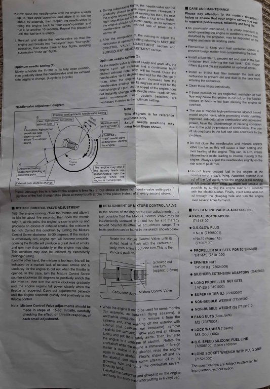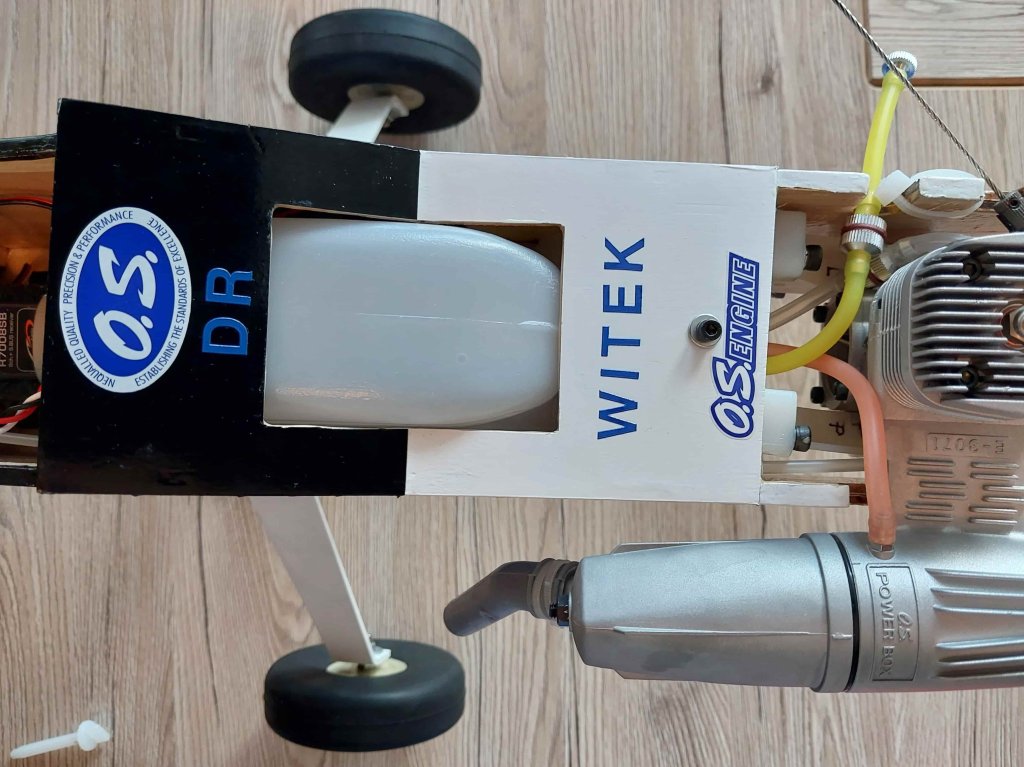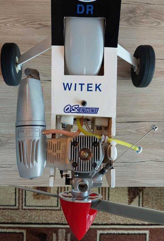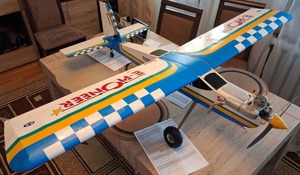 Dzień dobry, Drodzy Koledzy - z uwagi na nadmiar modeli latających RC w moim hangarze (zasób ponad 20 szt.) i niedostatek miejsca, oferuję do nabycia model górnopłata: Seagull E-PIONEER Trainer 156cm z silnikiem O.S. Max 46AX II z pełnym wyposażeniem, bez odbiornika - w cenie 1047 zł. Koszt zakupu nowego modelu i nowego silnika wraz z z nowymi elementami wyposażenia i materiałami montażowymi to ok. 2095 zł - bez koszów robocizny! Oferuję nowy, zmontowany - w pełni wyposażony i gotowy do lotu model z nowym: silnikiem, śmigłem, kołpakiem, zbiornikiem i armaturą, układem paliwowym, nowymi serwomechanizmami, nowym akumulatorem zasilającym i nowym wyłącznikiem - w cenie stanowiącej połowę (50%) kosztów! Stan modelu - dokładnie jak na zdjęciach i w poniższym opisie (pkt. 1. - 14.)! Odbiór modelu - na miejscu w Jaśle (w mieszkaniu, względnie na naszym Lądowisku IKAR Jasło, gdzie istnieje możliwość uruchomienia silnika, sprawdzenia układu sterowania i kołowania - przy sprzyjającej pogodzie). Nowy silnik O.S. Max 46AX II ze śmigłem APC 12,25X3,75" i kołpakiem z podstawą duralową zainstalowałem bezpośrednio w modelu - w celu wstępnego dotarcia na ziemi i wykonania oblotu. Wstępne dotarcie silnika (zgodnie z zaleceniami producenta OS Max w instrukcji) i kilkuminutowy oblot z użyciem paliwa Model Technics F/I SPORT 5% nitro przebiegły wzorcowo (paliwo o składzie: Metanol 77%, Olej KLOTZ 18%, Nitrometan 5% - paliwo do silników żarowych oparte na metanolu i oleju syntetycznym KLOTZ z 5% domieszką nitrometanu - przeznaczone dla nowych silników lotniczych). Silnik uruchamia się błyskawicznie i pracuje nienagannie, model jest prawidłowo wyważony i zachowuje się w locie znakomicie! Obecnie model jest w pełni gotowy do lotów. Do eksploatacji sugeruję nadal to paliwo, także po zupełnym dotarciu silnika - ewentualnie Model Technics F/I CONTEST 10% nitro paliwo do silników żarowych oparte na metanolu i oleju syntetycznym KLOTZ z 10% domieszką nitrometanu o składzie: Metanol 72%, Olej KLOTZ 18%, Nitrometan 10% (przeznaczone dla nowych i dotartych silników lotniczych) względnie Optimix 12 – 12% nitro / 18% SYNT o składzie: Metanol 70%, Nitrometan 12%, Olej syntetyczny 18%. KOSZTORYS w [ZŁ] - bez kosztów robocizny: 1. Model Seagull EP-E-PIONEER Trainer SEA-X9 - ok. 760,00 zł, łącznie z dostawą - obecnie nieosiągalny na rynku krajowym i zagranicznym, niegdyś dostępny, np: https://www.elitemodelsonline.co.uk/Aircraft/By-Manufacturers/Seagull/16001-/5500595-SEAGULL-EP-E-PIONEER-TRAINER-16m-SEA-X9 2. Klej CA JOKER rzadki 20g (nakrętka z igłą) - 5,50 zł https://nastik.pl/produkt/klej-ca-joker-rzadki-20g-nakretka-z-igla/ 3. Żywica epoxydowa 30-min. KAVAN 100g - 39,90 zł https://nastik.pl/produkt/zywica-epoxydowa-30-min-kavan-100g/ 4. O.S. MAX SILNIK 46AX II - tłumik W/E-3071 (15490) - 529,99 zł https://modelemax.pl/pl/os-max-silniki-do-samolotow/12467-os-max-silnik-46ax-ii-tlumik-w-e-3071-15490.html 5. Śmigło APC 12.25×3.75 Diablotin - 22,90 zł https://nastik.pl/produkt/smiglo-apc-12-25x3-75-diablotin/ 6. KOŁPAK Z PODSTAWĄ ALU ŻÓŁTY - 49,99 zł https://modelemax.pl/pl/podstawa-aluminium/8690-kolpak-z-podstawa-alu-63-mm-zolty.html [kołpak plastikowy z zestawu dołączam] 7. WĘŻYK DO PALIWA 2,5/5 mm / 1mb Q-model (286-C) - 6,99 zł https://modelemax.pl/pl/wezyki-opaski-zaciski-metanol/33082-wezyk-do-paliwa-25-5-mm-1mb-q-model-286-c 8. Zbiornik 350ml KAVAN z armaturą do metanolu - 28,90 zł https://nastik.pl/produkt/zbiornik-350ml-kavan-z-armatura-do-metanolu/ [zbiornik oryginalny z zestawu dołączam] 9. Filtr paliwa KAVAN - 4,95 zł https://nastik.pl/produkt/filtr-paliwa-kavan/ 10. Deflektor wydechu 10mm - 12,90 zł https://nastik.pl/produkt/deflektor-wydechu-10mm/ 11. Serwomechanizm Futaba S3010 BB (gaz) - 115,90 zł https://nastik.pl/produkt/futaba-s3010-bb/ 12. Serwomechanizm Hitec HS-82MG (lotki 2x, ster wysokości, ster kierunku) - 95,90 zł x 4 szt. = 383,60 zł https://nastik.pl/produkt/hitec-hs-82mg/ 13. Pakiet zasilający ENELOOP 4,8V/2000mAh NIMH RX SANYO (KAV33.1051404) płaski - 101,99 zł https://modelemax.pl/pl/pakiety-nimh-nicd/15415-eneloop-48v-2000mah-nimh-rx-sanyo-kav331051404-plaski 14. FUTABA WŁĄCZNIK SSW-J (15201) z kablem do ładowania - 31,99 zł https://modelemax.pl/pl/wlaczniki/32596-futaba-wlacznik-ssw-j-15201-z-kablem-do-ladowania.html =============================================================================================================================================================================== Razem koszt zakupu w [zł]: 760,00 + 5,50 + 39,90 + 529,99 + 22,90 + 49,99 + 6,99 + 28,90 + 4,95 + 12,90 + 115,90 + 383,60 + 101,99 + 31,99 = 2095,50 zł Wykonane prace montażowe i instalacyjne - zabudowa elementów: prasowanie poszycia foliowego; nałożenie - przy użyciu roztworu "30 minutowej" żywicy epoksydowej 2-składnikowej ze spirytusem - powłoki gruntującej i ochronnej, wzmacniającej konstrukcję i odpornej na paliwo metanolowe - na dostępnej powierzchni wewnętrznej kadłuba; zainstalowanie napędów orczykowych na lotkach, wyregulowanie i skonfigurowanie napędu lotek; prace przygotowawcze przy kadłubie do montażu usterzenia - zabudowa statecznika poziomego i pionowego wraz ze sprzęgiem kółka ogonowego, zainstalowanie napędów orczykowych na usterzeniu poziomym i pionowym; wykonanie mocowania łoża silnika do grodzi, wywiercenie otworów w łożu silnika, zainstalowanie silnika z deflektorem wydechu na tłumiku i sprężystą przedłużką regulacji iglicy gaźnika; poszerzenie otworów w kołpaku pod śmigło; zainstalowanie wyłącznika z gniazdem ładowania; wykonanie podstawy do zabudowy serwomechanizmu gazu, zainstalowanie serwomechanizmu gazu wraz z wykonanym orczykiem napędowym gazu i popychaczem na snapach kulowych, wycięcie otworu w grodzi pod popychacz gazu, wyregulowanie sterowania; zamontowanie goleni podwozia dla wybranej opcji podwozia gł