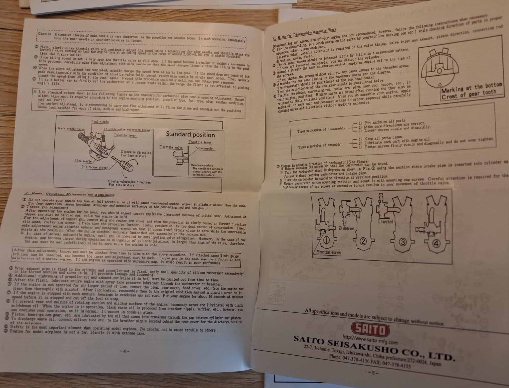 Dzień dobry, Drodzy Koledzy - z uwagi na nadmiar modeli latających RC w moim hangarze (zasób ponad 20 szt.) i niedostatek miejsca, oferuję do nabycia model dolnopłata: VQ MARACANA 40 LOW WING Trainer 160cm z silnikiem Saito FA-62B - z pełnym wyposażeniem, bez odbiornika - w cenie 1666 zł zł. Koszt zakupu nowego modelu i nowego silnika wraz z z nowymi elementami wyposażenia i materiałami montażowymi to ok. 2776 zł - bez koszów robocizny! Oferuję nowy, zmontowany - w pełni wyposażony i gotowy do lotu model z nowym: silnikiem, śmigłem, kołpakiem, układem paliwowym (armaturą zbiornika), nowymi serwomechanizmami, nowym akumulatorem zasilającym i nowym wyłącznikiem - w cenie stanowiącej 60% kosztów! Stan modelu - dokładnie jak na zdjęciach i w poniższym opisie (pkt. 1. - 12.)! Odbiór modelu - na miejscu w Jaśle (w mieszkaniu, względnie na naszym Lądowisku IKAR Jasło, gdzie istnieje możliwość uruchomienia silnika, sprawdzenia układu sterowania i kołowania - przy sprzyjającej pogodzie). Nowy silnik Saito FA-62B ze śmigłem APC 12X6" i kołpakiem z podstawą duralową zainstalowałem bezpośrednio w modelu - w celu wstępnego dotarcia na ziemi i wykonania oblotu. Wstępne dotarcie silnika (zgodnie z zaleceniami producenta SAITO w instrukcji) i kilkuminutowy oblot z użyciem paliwa: Optimix 12 – 12% nitro 4-Stroke / 20% KLOTZ przebiegły wzorcowo (paliwo o składzie: Metanol: 68%, Nitrometan: 12%, Olej syntetyczny KLOTZ: 20% - mieszanka paliwa do 4-suwów zawierająca 12% nitrometanu i 20% w pełni syntetycznego oleju Klotz, paliwo przeznaczone do silników samolotowych, śmigłowcowych i łodzi). Silnik uruchamia się błyskawicznie i pracuje nienagannie, model jest prawidłowo wyważony i zachowuje się w locie znakomicie! Obecnie model jest w pełni gotowy do lotów. Do eksploatacji sugeruję nadal to paliwo, także po zupełnym dotarciu silnika KOSZTORYS w [ZŁ] - bez kosztów robocizny: 1. Model VQ MARACANA (klasa 46 EP-GP) ARF - VQ-Models - 895,94 zł https://modele.sklep.pl/samolot-maracana-klasa-46-ep-gp-arf-vq-models-p-45502.html 2. Klej CA JOKER rzadki 20g (nakrętka z igłą) - 5,50 zł https://nastik.pl/produkt/klej-ca-joker-rzadki-20g-nakretka-z-igla/ 3. Żywica epoksydowa 30-min. KAVAN 100g - 39,90 zł https://nastik.pl/produkt/zywica-epoxydowa-30-min-kavan-100g/ 4. Silnik SAITO FA-62B - 1229,99 zł https://nastik.pl/produkt/saito-fa-62b/ 5. Śmigło APC 12x6" 22,99 zł https://modelemax.pl/pl/130-smigla-apc?page=4 6. KOŁPAK Z PODSTAWĄ ALU 63 mm CZERWONY - 49,99 zł https://modelemax.pl/pl/podstawa-aluminium/8689-kolpak-z-podstawa-alu-63-mm-czerwony [kołpak plastikowy z zestawu dołączam] 7. WĘŻYK DO PALIWA 2,5/5 mm / 1mb Q-model (286-C) - 6,99 zł https://modelemax.pl/pl/wezyki-opaski-zaciski-metanol/33082-wezyk-do-paliwa-25-5-mm-1mb-q-model-286-c 8. Filtr paliwa KAVAN - 4,95 https://nastik.pl/produkt/filtr-paliwa-kavan/ 9. Serwomechanizm DDELUXE HITEC HS-322HD (gaz, lotki 2x, ster wysokości, ster kierunku) - 74,90 x 5 szt. = 374,50 zł https://nastik.pl/produkt/hitec-hs-322hd/ 10. Pakiet zasilający ENELOOP 4,8V/2000mAh NIMH RX SANYO (KAV33.1051404) płaski - 101,99 https://modelemax.pl/pl/pakiety-nimh-nicd/15415-eneloop-48v-2000mah-nimh-rx-sanyo-kav331051404-plaski 11. PRZEDŁUŻACZ DO SERW FUTABA 30 cm / skrętka (2001) [do serwa lotek] - 3,99 x 2 szt. = 7,98 zł https://modelemax.pl/pl/przedluzacze/16852-przedluzacz-do-serw-futaba-30-cm-skretka-2001 12. FUTABA WŁĄCZNIK SSW-J PROFI (0626) z kablem do ładowania - 35,99 https://modelemax.pl/pl/wlaczniki/32594-futaba-wlacznik-ssw-j-profi-0626-z-kablem-do-ladowania =============================================================================================================================================================================== Razem koszt zakupu: 895,94 + 5,50 + 39,90 + 1229,99 + 22,99 + 49,99 + 6,99 + 4,95 + 374,50 + 101,99 + 7,98 + 35,99 = 2776,71 zł Wykonane prace montażowe i instalacyjne - zabudowa elementów: prasowanie poszycia foliowego; nałożenie - przy użyciu roztworu "30 minutowej" żywicy epoksydowej 2-składnikowej ze spirytusem - powłoki gruntującej i ochronnej, wzmacniającej konstrukcję i odpornej na paliwo metanolowe - na dostępnej powierzchni wewnętrznej kadłuba; sklejenie obu połówek płata żywicą, zainstalowanie napędów orczykowych na lotkach, zainstalowanie serwomechanizmów napędu lotek, wyregulowanie i skonfigurowanie napędu lotek; prace przygotowawcze przy kadłubie do montażu usterzenia - wklejenie statecznika poziomego i pionowego, zainstalowanie serwomechanizmów oraz napędów orczykowych steru wysokości/głębokości i kierunku w kadłubie - wyregulowanie i skonfigurowanie sterowania; wykonanie mocowania łoża silnika do grodzi, wywiercenie otworów w łożu silnika, zainstalowanie silnika z przedłużką regulacji iglicy gaźnika; poszerzenie otworów w kołpaku pod śmigło; zainstalowanie wyłącznika z gniazdem ładowania; zainstalowanie serwomechanizmu gazu wraz z wykonanym orczykiem napędowym gazu i popychaczem na snapach kulowych, wycięcie otworu w grodzi pod popychacz gazu, wyregulowanie sterowania; zamontowanie goleni podwozia podwozia głównego i przedniego, zamontowanie kół podwozia, kółka przedniego; wykonanie sprzęgu kółka przedniego ze sterem kierunku, wykonanie instalacji w zbiorniku paliwa, dopasowanie i zainstalowanie rurek w zbiorniku, zamknięcie i próba szczelności zbiornika paliwa, poziomowanie zbiornika w linii instalacji paliwowej - wykonanie otworu w pokrywie zbiornika i dopasowanie pokrywy, zabudowa zbiornika wraz z instalacją paliwową; ulokowanie akumulatora zasilającego w centropłacie na rzepach. Z pozdrowieniami Adam Langer / Jasło [członek Jasielskiego Stowarzyszenia Lotniczego IKAR im. Leszka Preisnera, emerytowany nauczyciel języka niemieckiego] e-mail: germanad@mm.pl tel.: 662063107 VQ_Models_MARACANA_Instruction_guide.pdf