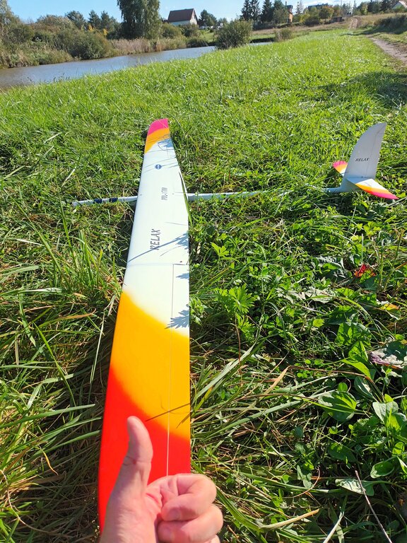 Tak informacyjnie model oblatany ... to niebieskie ptaszysko jest bajecznie przyjemne...euforia x1000. Wszedł jeden pakiet 2200mah 3S I wyważył model prawie idealnie. Prawie bo o dziwo na przód muszę mu po tym locie dołożyć z 10g. Waga wyszła 2320g i nie musi być lekki bo lotny i tak jest baaaardzo. CG ustawione idealnie na 108 mm ale wolę go mieć lekko na przód w locie. I co ważne lata przemieszczając się a nie wisi w powietrzu (brak efektu gazety). Na tą chwilę nic w nim nie zmieniam i czekam na termikę bo dziś była cisza z nikąd + wilgotno w powietrzu. A co bym zmienił to tylko silnik + pakiet 4s ale tylko dlatego że wszystkie moje modele mają rakietowe stary a ten ma tylko a może aż dostojne wznoszenie. Załączam kilka fotek bo filmiku brak. Dziękuję za wszelką pomoc w poradach.