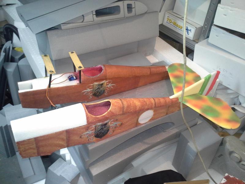 W Krakowie najbardziej poległa "duma pilota" !!! Sam ŁaGG po klejeniu które zajęło około 15s. wykonał dwa loty zwiadowcze i wraca do walki ;-) Biorąc pod uwagę że na trzech zawodach z rzędu zajął piąte miejsce (w Krakowie mógł być 3-ci) a jego pilot jest raczej średni, to znaczy że lata świetnie ;-) Wracając do relacji to zrobienie chłodnic na natarciu sprawiło wiele problemów, pewnie w przyszłości powstrzymam się od takich "estetycznych wybryków". Jak zwykle malowałem model przed sklejeniem skrzydeł, kadłuba i stateczników bo to bardzo ułatwia maskowanie i o wiele łatwiej jest operować małymi elementami niż całym samolotem. SW na dwóch popychaczach Wyposażenie raczej standardowe; trzy tanie 9-cio gramowe serwa 20A regulator i silnik 2212-10 1400kv ze śmigłem GWS 9x5 http://www.marvio-rc...0-kv,3,1343,137 Wcześniej latałem na 8x4 ale okazał się za wolny ale wytrzymywał 7min na "zaciętej manetce" Ciekawostką jest że Komet z takim samym silnikiem i śmigłem, 8x4 lata dużo szybciej i również wytrzymuje 7min.