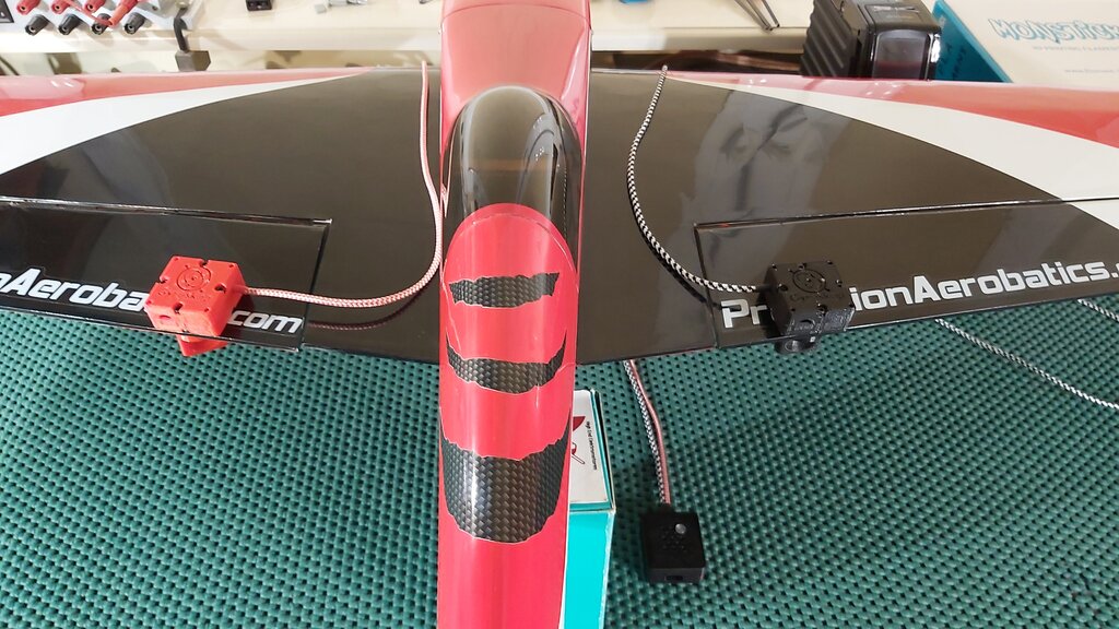21. Projekt wynalazłem na githubie i zdecydowałem się wystrugać. Do realizacji potrzebne są takie płytki. W wydrukowanych obudowach wygląda to tak: Zamocowane na lotkach za pomocą magnesów: Wyniki pomiarów lewej lotki na czerwono a prawej na czarno.