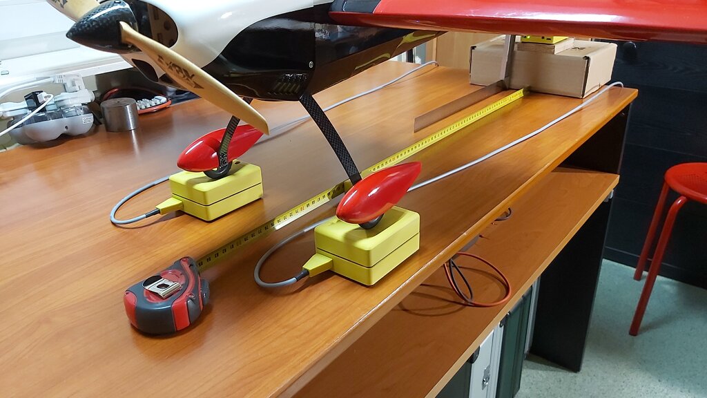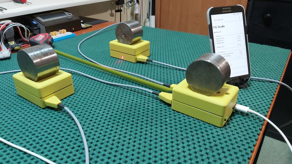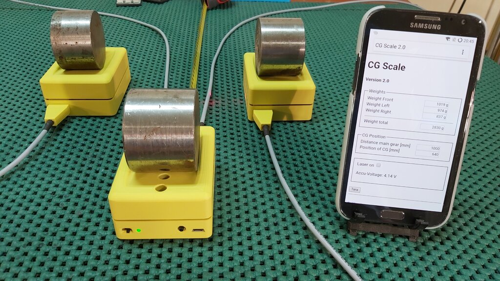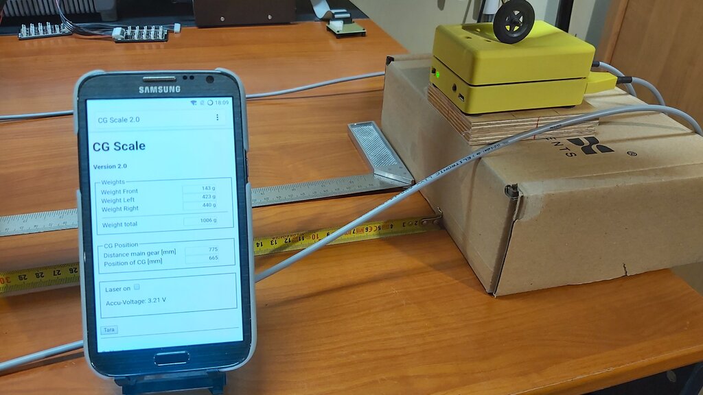 Ten projekt. Najpierw zrobiłem tzw. pajęczynkę i przekonałem się do zrobienia prototypu. Tensometry 10kg więc śmiało można ważyć modele 25kg. Laser ułatwia odczyt odległości od osi koła przedniego do osi kół podwozia głównego. Sercem wagi jest ESP32 i budowa oraz uruchomienie nie nastręcza trudności.