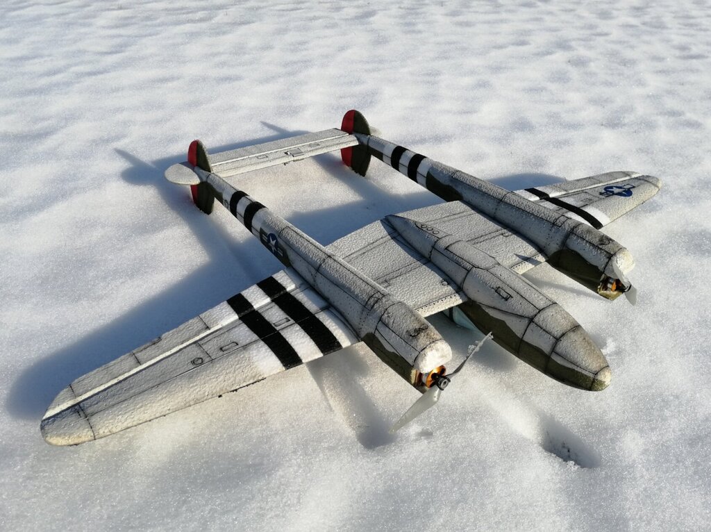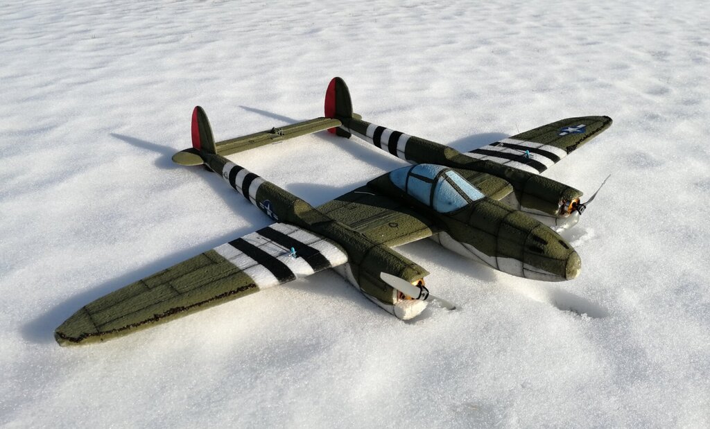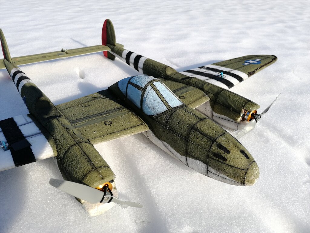 P-38 prawie pomalowane:). Brakuje linii podziałowych i aerografu. Wybrałem malowanie Robina Oldsa. https://pl.wikipedia.org/wiki/Robin_Olds Bardzo fajnie widoczny w powietrzu dzięki pasom inwazyjnym oraz czerwieni na sterach kierunków Jutro zadebiutuje na zawodach w Płocku. -