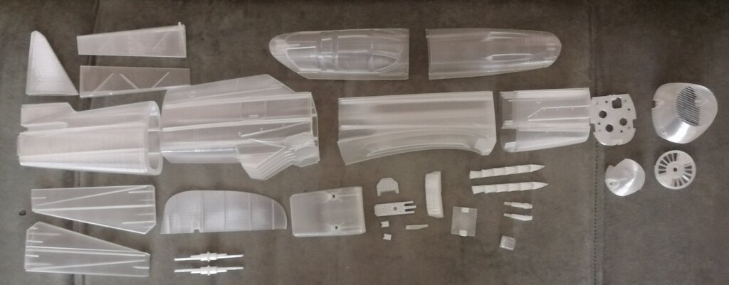 Trochę walki z Enderem 3 Pro i wydrukowane Drukowałem z PLA Waga drukowanych elementów 400g (bez mocowania silnika, które będzie z innego materiału lub wygrzewane w piekarniku :)) Silnik już zamówiony, resztę wyposażenia znalazłem w szufladzie. Brakuje śmigła 9x6. Elementy bardzo dobrze do siebie pasują, linie podziałowe wyglądają znakomicie. Część elementów które są drukowane w trybie wazy musiałem drukować za pomocą programu Printrun. Z karty co jakiś czas zatrzymywało się drukowanie i powstawał "kleks" PLA. Próbowałem różnych kart cały czas było tak samo. Teraz posklejać to wszystko, pomalować i w górę