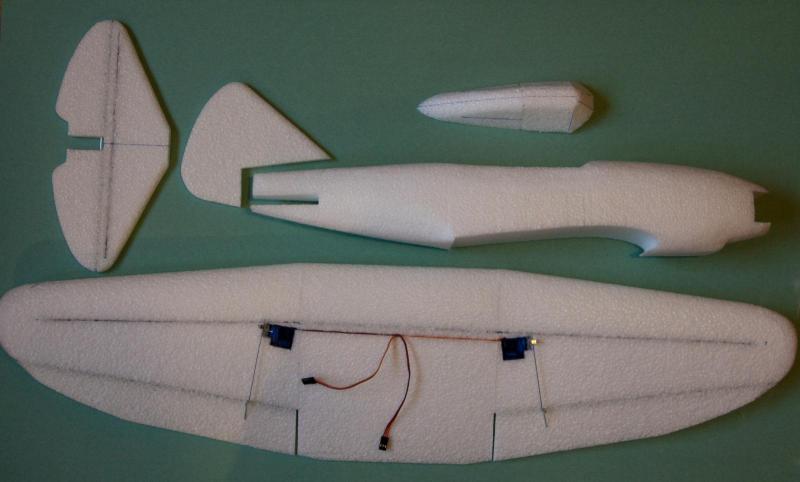 Do zawodów coraz mniej czasu więc trzeba przyśpieszyć Na dzień dzisiejszy: Skrzydło gotowe wzmocnione prętami węglowymi góra dół. Serwa już na swoim miejscu, popychacze gotowe. Statecznik poziomy wzmocniony, wklejony aluminiowy pręt łączący połówki steru wysokości, natarcie wyprofilowane. Jedna uwaga odnośnie pręta łączącego połówki. Trzeba pamiętać o zwiększeniu przyczepności kleju do tego elementu. Przeszlifowałem go delikatnie dremelem i już nie jest taki gładki:) Statecznik pionowy wyprofilowane natarcie. Kadłub wyprofilowany, pozostało jeszcze wkleić wzmocnienia. Pozostaje. Połączyć wszystko w całość, władować wyposażenie i do lakiernika:) Wieczorem zdjęcie i ciąg dalszy budowy. -