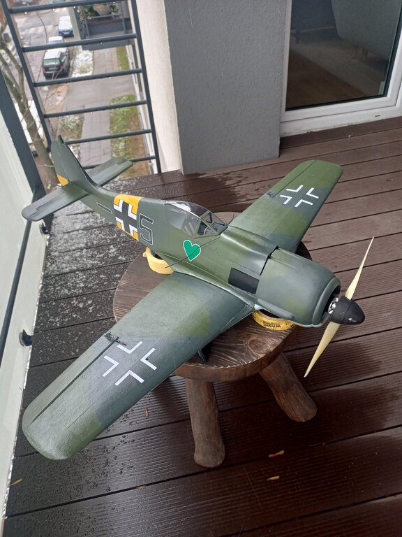 Dzięki 😁 ale nie wiem, trochę cegiełkowaty, może jest to spowodowane złudzeniem, bo rozpiętość to tylko 89 cm. Tak jest masz rację, a FW to mój ulubiony sprzęt z okresu 2 wojny światowej, sama bryła modelu to A8, malowanie z A5, kabina D9 no ale to dla wtajemniczonych 😜. Jak dla mnie największy urok jest w A8, a dokładniej profilowanie maski karabinów w kadłubie, nie można się napatrzeć 😜 a to tylko model. Ps. Jak coś to z czystym sumieniem polecam plany z których budowałem, wszystko fajnie spasowanie i odwzorowanie co do oblotu to się jeszcze okaże.