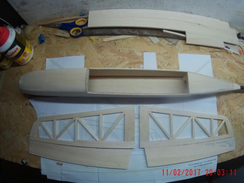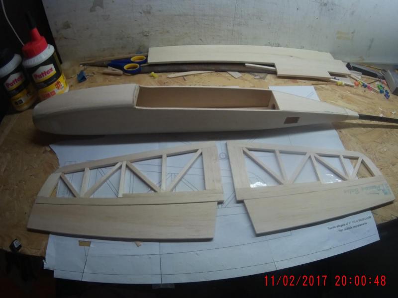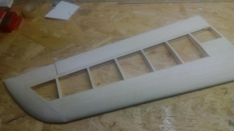 Cześć, dziś udało mi się wstępnie skończyć prace nad kadłubem i statecznikiem- z grubsza skończne Statecznik sklejony z listewek balsowych 5x5 mm i oszlifowany, podstawa statecznika jest ze sklejki 1,5mm w planach była płytka carbon 1mm ale takową nie dysponowałem, w kadłubie wkleiłem w miejscu gdzie będzie skrzydło po obu stronach listewki balsowe 4x4 na całej długości, a w kadłubie wyciąłem klapkę przez którą będę wkładał pakiet (mocowanie na magnes neodymowy). Z racji tego ze w modelach typowo z balsy jestem początkujący mam do was kilka pytań, model chciałem pokryć folią overcorver (zaznaczam że pierwszy raz), czy przed oklejaniem statecznika mogę wkleić zawiasy i końcówki czy zrobić to dopiero po oklejeniu folią? czy nie będę miał problemów z oklejeniem kadłuba, chodzi mi o to czy dam sobie radę z zaokrągleniami żeby nie porobić fałdek lub niechcianych załamań foli? czy może kadłub prysnąć jakimś podkładem w spreju ,wyszlifować i pomalować lakierem na gotowo będzie jakaś różnica w wadze? całość to co na zdjęciach plus kołpak ze śmigłem i silnikiem 230g. i na koniec ,statecznik według planów mocowany jest do rurki od spodniej strony, czy skleić go z rurką na stałe czy może umocować na 2 śrubki żeby mieć możliwość późniejszej ewentualnej regulacji? Tyle na dziś w dalszej kolejności skrzydła, i dzięki za ewentualne odpowiedzi