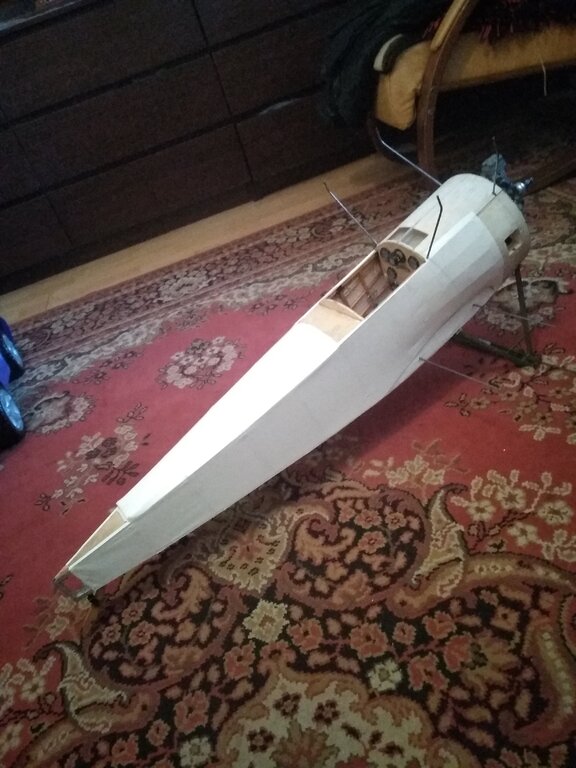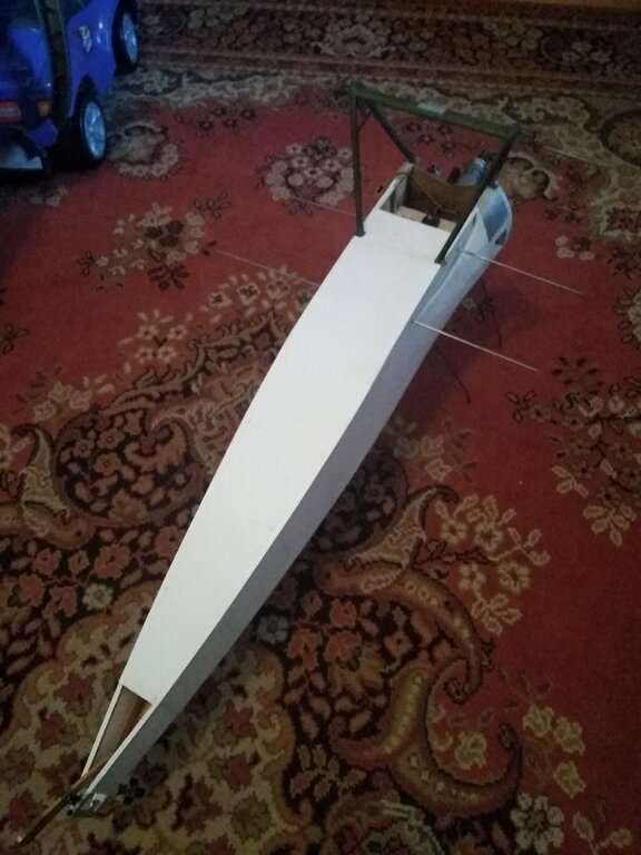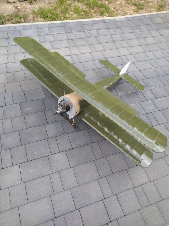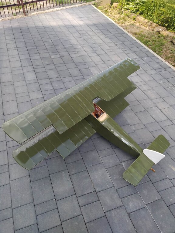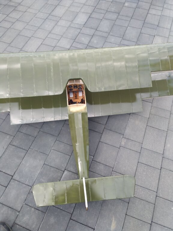 Jest to samochodowy lakier akrylowy, byłem w mieszalni lakierów i mi zrobili. Dlatego samochodowy bo dobrze trzyma i co najważniejsze jest odporny na paliwo modelarskie. Dzisiaj udało się wkleić podwozie i okryć folią kadłub. Było troszkę nerwowo ale dałem rady?