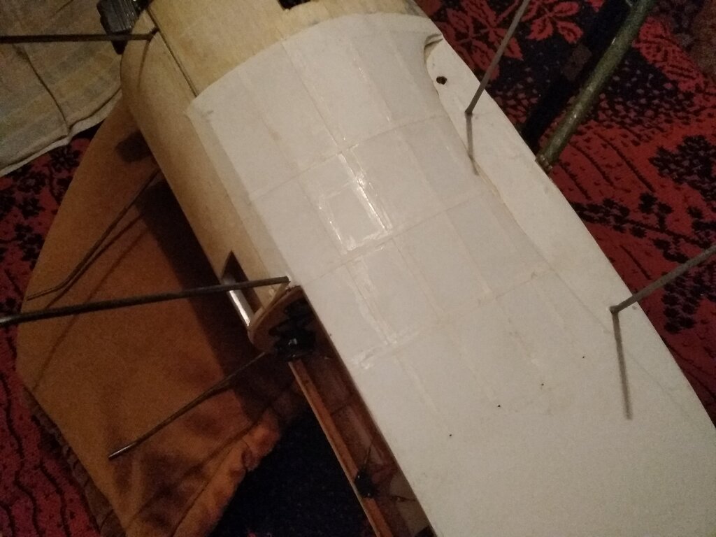 Witam dzisiaj przyjemniejsza część klejenia czyli obklejanie.Na pierwszy plan poszedł górny płat. Zdecydowałem się na oratex tani on niestety nie jest?