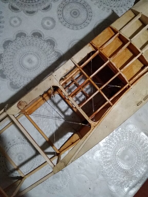 No to Jarek teraz to już wiem że mam problem z manią będę musiał poszukać dobrego terapeuty ? Myślę Piotrek że nie będzie z tym problemów mam tak w pupie 1/8 nie ma żadnych luzów lotki poprawnie chodzą zresztą wszystko wyjdzie w praniu. Próbowałem przeciągnąć linkę przez bolwdem i bardzo ładnie lekko chodzi. Dzisiaj zmęczyłem dźwignie lotek i sterów z aluminium 1 mm I tak to mniej więcej wygląda na docelowym miejscu i dzisiaj na tyle