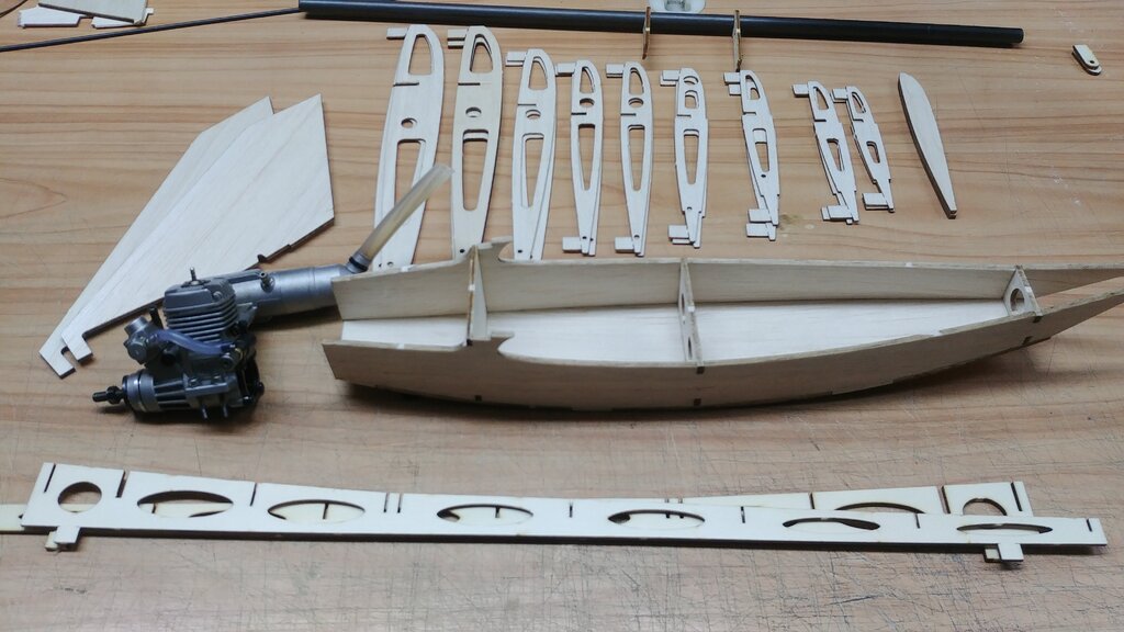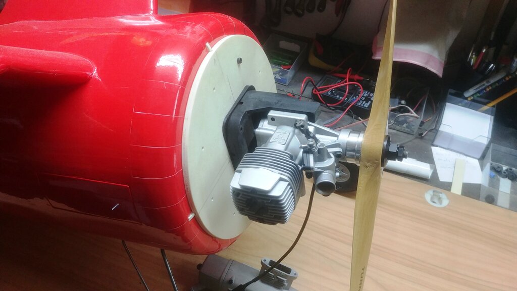 Każdy silnik będzie dobry aby za bardzo nie wystawał poza osłonę. Z opisów kolegów wiem, że model lata na OS52FS, ASP60FS, OS72FS, SuperTigre g-51. Bez dodatkowego ołowiu raczej się nie obejdzie. Zamontowanie nakrętek kłowych do mocowania łoża silnika po zbudowaniu kadłuba będzie raczej niemożliwe. Budowa modelu zaczyna się od tych nakrętek. Zdecyduj się więc na odpowiedni silnik, Saito 82 moim zdaniem to zbyt mocny silnik do tego modelu -