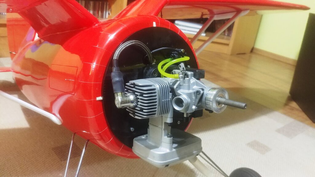 Silnik który ma napędzać ten model to OS 15 GT. Jest tylko problem z tłumikiem. Oryginalny niestety nie pasuje .Szukam jakiegoś odpowiedniego ale jakoś do tej pory nie znalazłem o rozstawie śrub mocujących 42 mm. Ostatecznie trzeba będzie dorobić samemu i tu jest problem bo nie mam pojęcia jakie powinien mieć parametry na przykład: objętość, średnica wydechu. Oryginalny tłumik ma jeszcze kryzę w środku. Ktoś ma jakiś pomysł ? ?