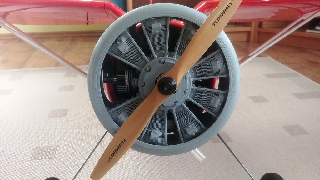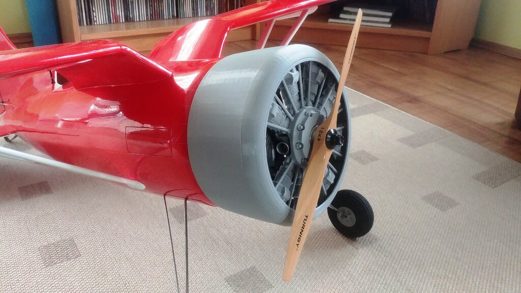 Zgodnie z ostatnio modnym powiedzeniem „trzeba łączyć a nie dzielić” połączyłem starą modelarską technologię budowy modeli z nowym trendem . Dotychczas maski silnika budowałem z laminatów a tym razem wydrukowałem i maskę i atrapę silnika. Zajęło mi to mnóstwo czasu bo najpierw musiałem się nauczyć projektować .Silnik pobrałem z internetu ale wymagał wielu zmian aby go dopasować do mojej maski. Po wielu próbach i zmianach powstał wyrób finalny który wreszcie mnie zadowala. Następnym wyzwaniem są golenie, osłony kół i kabinka pilota. Łatwo nie będzie ?