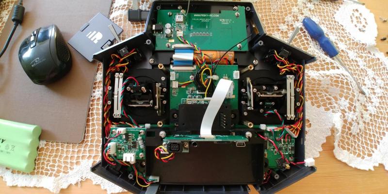Dzięki Marek. Bardzo mi pomogłeś Okazuje się,że są różne płyty główne w horusie. Oglądałem kilka filmów na youtube i nie było baterii w tym miejscu co na mojej na przykład tu: U mnie jest tak: Przy okazji stwierdziłem,że kabelki do ruchomych części gimbali są trochę "twardawe" , można się spodziewać zmęczenia materiału na zdjęciu z neta są innego koloru niż u mnie. W moim nadajniku też występują w takim kolorze i są bardziej elastyczne. Mój nadajnik wyprodukowano we wrześniu 2016 roku, to pewnie jeden z pierwszych ,nie mam z nim problemów, ta bateria to tylko data i czas, nie istotne ,mogło by tego nie być ale nad kabelkami do gimbali trzeba by się zastanowić