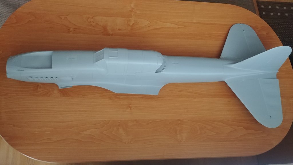 Model gotowy do montażu wyposażenia. Całość waży 830 g ale do lotu wyjdzie 1500 g bez malowania. Według konstruktora model powinien latać na 6s i osiągać prędkość 150km/h. Ja zamierzam oblatać go na 3s co znacznie zmniejszy wagę ale i tak będzie wspomniane 1500g. Zobaczymy co z tego wyniknie (żółtych worków mam dostatek)