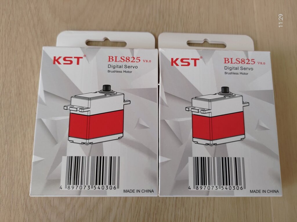 Nowe serwa KST BLS825 zmiana planów i idą do sprzedania Waga: 70g Wymiary: 40.5*20*38mm Moment: 35 kg/cm(8.4V) / 30 kg/cm(7.4V) / 20 kg/cm(6.0V) Prędkość: 0.11 sec/60st (8.4V), 0.13 sec/60st (7.4V), 0.15 sec/60st (6.0V) Napięcie pracy: 6-8.4V Częstotliwość pracy: 1520us/333Hz Silnik: Bezszotkowy W zestawie komplet orczyków i śrubek. cena za sztukę 270zł