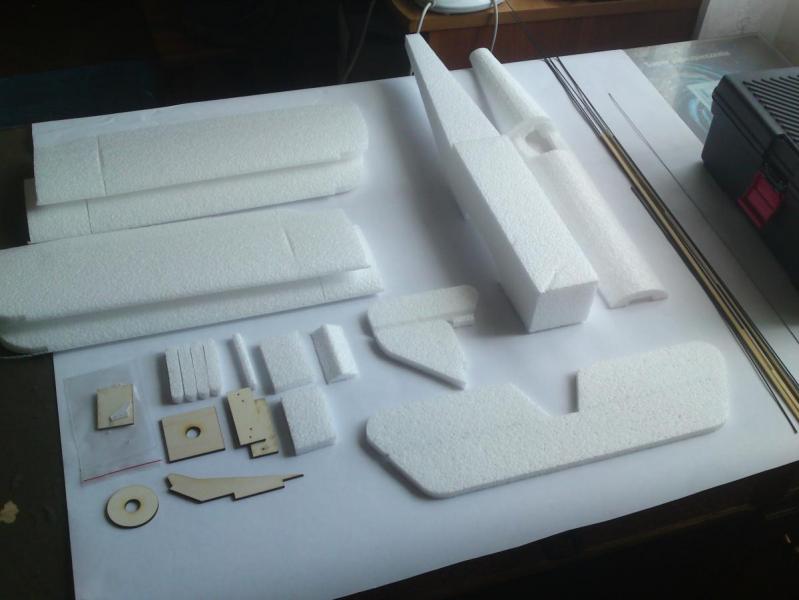 Wczoraj przyszła do mnie paczka której zakup planowałem już dawno, lecz ciągły brak funduszy przeszkadzał mi w tym. Dzięki wyrozumiałości Marka, który dał mi zniżkę udało mi się w końcu uzbierać na model i zacząć swą przygodę z ww1. Model ma być w malowaniu W.Bishopa z 60 dyw. RAF http://i44.tinypic.com/2gwib0p.jpg Zawartość pudełka: Jestem zaskoczony dużą powierzchnią skrzydeł i myślę, że model będzie miał wspaniałe własności pilotażowe. Mam jednak trochę problemów z budową, bo nie wiem za bardzo które części są do czego, a szczególnie te wycięte laserowo ze sklejki. Jako że nie znalazłem zdjęć to wyjaśniających, liczę na Waszą pomoc. Zacząłem jednak od tego co wiem na pewno: wzmocniłem i zaokrągliłem stateczniki i skrzydła. A oto wyposażenie modelu: Głowię się również nad umieszczeniem i dostępem do pakietu. Może ktoś wspomoże zdjęciem?