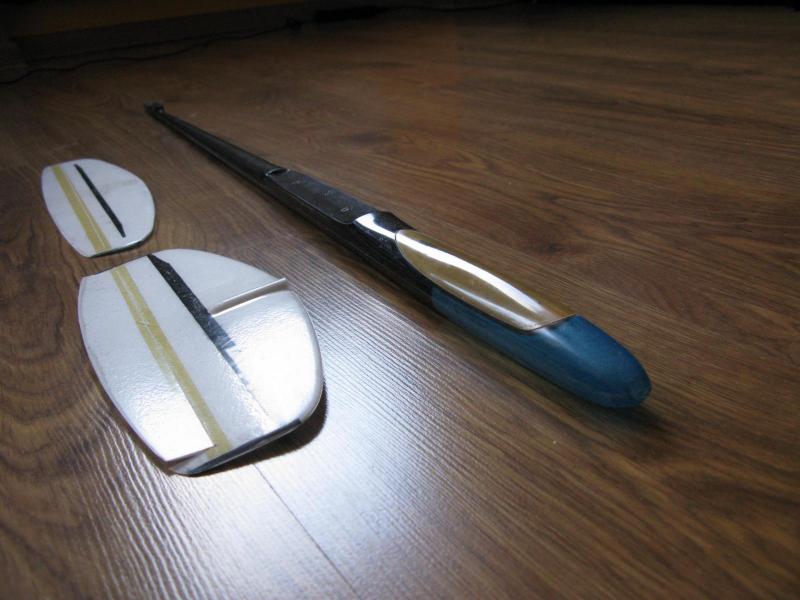 Forma wyfrezowana,po kilku nieudanych próbach kołki zaczęły wychodzić! Po lotach testowych moge powiedzieć ,że jestem zadowolony-kołek bardzo wygodny i mocny waga ok 2,5 garama ,piloci słabiej rzucający mogą sobie oszlifować wg własnych potrzeb,zmniejsząc przy tym wagę.Celem było uzyskanie powtarzalnego produktu. Cena 10 euro. Kołek został testowany na tym,nowym modelu.Waga 296g,model przygotowany do lotów w trudnych warunkach z możliwością zabrania na pokład 120g balastu.