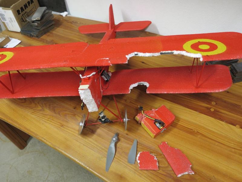 I nowa maszyna już w hangarze: Nieuport 17. Robiony przez dwa tygodnie wieczorami, lata od prawie tygodnia. Szykowany był na piknik w Raciborzu, gdzie zresztą wystapił podczas walki powietrznej w której stracił lewą połówkę steru wysokości oraz cały ster kierunku (potem przez dwie minuty prawdziwa walka o utrzymanie modelu w powietrzu ). Model poskładany z zestawu zakupionego na aerosup.cz. Malowanie ukradzione z Nieuporta 24, ale myślę że wygląda równie dobrze na 17-tce