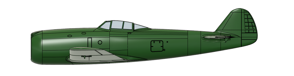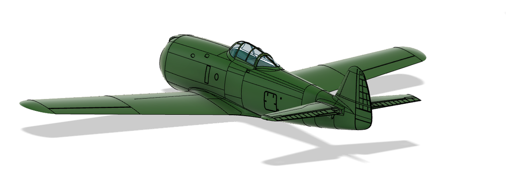 Dodałem kilka detali np. zastrzały statecznika poziomego, poprawiłem linie podziału w sposób jaki opisał wyżej Przemek. W wolnym czasie zabiorę się za malowanie wcześniej wydrukowanego modelu i puszczę na drukarce zmieniony kadłub. Aktualnie model na renderze wygląda tak: