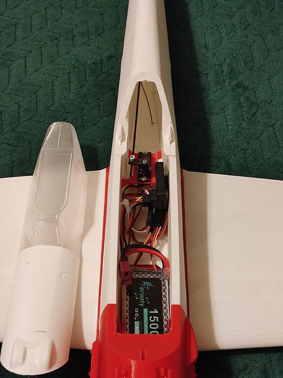 Nie miał okazji, od czasu nieudanego oblotu Messerschmitta niewiele się działo u mnie w temacie modeli. Dostosowałem go pod druk z PLA-LW, dodam zdjęcia jak będzie wydrukowany. Edit: Model już wydrukowany i złożony, białe elementy to PLA-LW, czerwone PLA+. Malowanie dopiero po oblocie, bo nie wiem co z tego będzie ?. Do lotu na esiakowym setupie z akumulatorem 3s 1500mah waży 540g.