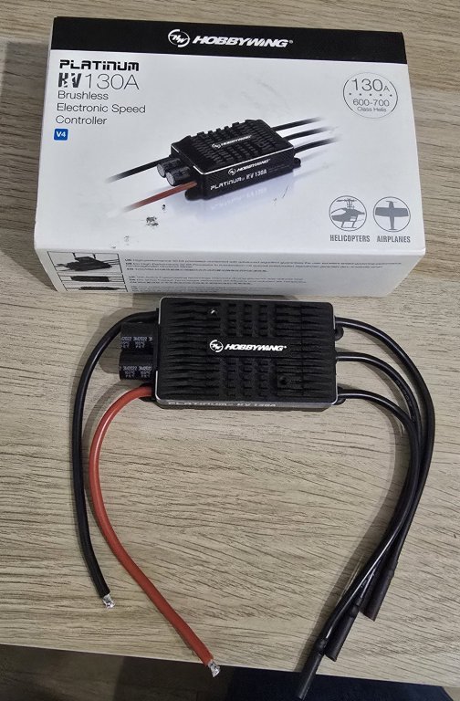 1. Ładowarka Imax DUO 400W (200zł + wysyłka) Operating voltage range: DC 11. 0-18.0 Volt Circuit power: Max. Charge power 2x200Watts Max. Discharge power 2x25Watts Charge current range: 0.1-10.0A Discharge current range: 0.1-5.0A Current drain for balancing Li-Po/Ion/Fe: 300mA/cell Li-ion/Fe/Polymer cell count: 1-6cells NiCd/NiMH battery cell count: 1-18cells Pb battery voltage: 2-20V Net weight: 727g Dimension: 200x135x57mm 2. Ładowarka ISDT Q8 500W (200zł + wysyłka) Moc ładowania: DC 500 W. Prąd ładowania: 0,1A-20,0A Moc rozładowania: 15 W. Prąd rozładowania: 0,1A-1,5A Napięcie wejściowe: DC 10-34 V. Napięcie wyjściowe: DC 1-34 V. Baterie: LiFe, Lion, LiPo 1-8S, LiHV: 1-7S, Pb: 1-12 S., NiMH: 1-16S Prąd balansu: 1,5 A / ogniwo Max Wymiary: 80x80x34mm 3. Regulator Hobbywing Platinum 130A do 14S (650zł+ wysyłka) https://nastik.pl/produkt/hobbywing-platinum-hv-130a-v4/ 4. Regulator Align 100A RCE-BL100A (250zł + wysyłka) https://rcforever.pl/product-pol-4509-Regulator-obrotow-ALIGN-100A-RCE-BL100A.html Brandowany Hobbywing Platinum 120A V4 programuje się tym samym programatorem