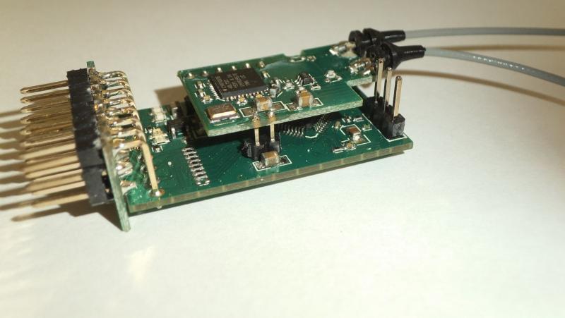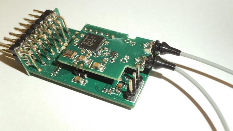 Chciałbym zaprezentować tani odbiornik 8 kanałowy działający z systemem Spektrum w technologii DSM-2 oraz DSM-X a więc do wszystkich nowszych i starszych aparatur firmy Spektrum bez problemu będzie pasował. Cena odbiornika to niecałe 75zł. Parametry podane przez producenta: Typ: odbiornik pełno zasięgowy (1.5-2km) Liczba kanałów: 8 Modulacja: DSM-2, DSM-X 2.4 GHz Rozmiar: 47mm X 24mm X 14mm Waga: 12g Zakres napięcia: 3.5-9.6 V Wymiary urządzenia: 47mm X 24mm X 14mm Odbiornik po podłączeniu do bindowania zgłosił się jako DSM-X 22ms. W odbiorniku zamontowano dwie diody LED: Pomarańczowa informuje nas miganiem o trybie parowania oraz świeceniem o pracy urządzenia po sparowaniu z nadajnikiem. Czerwona: o aktywnym wyjściu PPM na kanale GEAR, o tym trybie pracy opowiem przy okazji. Przedmiot dostajemy w foliowym antystatycznym woreczku razem z dziwną zworką do bindowania która jest mało poręczna z uwagi na potrzebę jednoczesnego wciśnięcia przycisku jak i podpięcia zasilania do modelu (bądź samego odbiornika). Służy za to ona do jeszcze jednej funkcji. Po sparowaniu odbiornika z radiem i jego uruchomieniu naciskamy podłączony „bind plug” RAZ by aktywować sygnał PPM na piątym kanale GEAR. Wówczas w odbiorniku zapala się ( dodatkowa czerwona) dioda LED informująca o aktywności sygnału PPM). Niestety reset zasilania wymaga ponownego kliknięcia przyciskiem aby mieć dalej PPM. Dla mnie to jakaś paranoja i nie popieram takiego rozwiązania. Po prostu nie da się uzyskać ciągłego sygnału PPM na wyjściu. Oryginalne odbiorniki posiadają funkcje informowania miganiem czerwonej diody w przypadku utraty zasięgu (ilość mignięć = ile razy utracono zasięg) tu niestety producent ZREZYGNOWAŁ z tej funkcji i po wyłączeniu radia pomarańczowa dioda LED po prostu gaśnie, po uruchomieniu radia zapala się ciągłym światłem informując o przywróceniu zasięgu. Odbiornik wyposażony jest w dwie anteny o długości całkowitej 145mm każda. Po otworzeniu widzimy dwie płytki z których górna jest częścią odbiorczą a dolna częścią przetwornika na kanały PWM. Na płytce RF oprócz układu odbiorczego CYRF6936 producent umieścił niskoszumowy wzmacniacz sygnału odbieranego MAX2644 (może na tym polega ta ich „lepszość” i daleki zasięg odbiornika deklarowany przez producenta). Rozwiązania tego na pewno nie spotkamy w oryginalnych odbiornikach Spektrum. http://www.s-manuals.com/pdf/datasheet/m/a/max2644_maxim.pdf Wracając natomiast do samych anten można zauważyć że jedna wcale nie jest podłączona. Widząc dwie anteny myślałem wręcz o jakimś układzie przełączającym je gdyż miejsca na płytce sporo a tu proszę równie dobrze mogło by jej wcale nie być a odbiornik nie stracił by na jakości. Jako dipol to też nie pracuje gdyż antena główna ma około 118mm ekranu. Przyjmuje więc że dodanie tego „wąsa” było czystym zagraniem wizualnym by odbiornik prezentował się bardziej profesjonalnie. Testy odbiornika w trybie redukcji mocy RF wykazały że po odejściu na przepisowe 30m odbiornik wciąż łapał idealny sygnał zapewniając pełną kontrolę. No to idziemy dalej.. dopiero po przejściu 60m odbiornik zaczął czasami migać sygnalizując początek problemów z zasięgiem. Wynik ten uważam za bardzo pozytywny a do jego sukcesu przyczynił się pewnie wbudowany wzmacniacz którego wszystkie fabryczne odbiorniki jak wspomniałem wcześniej nie posiadają. Podsumowując za kwotę około 50zł otrzymujemy bardzo dobry odbiornik o wielu kanałach z możliwością w przyszłości dopięcia satelitki dla jeszcze stabilniejszego linku. Odbiorniki te sprzedawcy określają jako lepszy zamiennik modelu AR8000 a czy to prawda… to się okaże po testach w powietrzu. Plusy: * Kompaktowe wymiary. * Ilość kanałów. * Możliwość podpięcia satelitki. * Niska cena. Minusy: * Brak powiadomień o utracie zasięgu * Beznadziejny sposób uruchamiania wyjścia PPM * Brak ciągłej pracy odbiornika z wyjściem PPM Odbiornik dostępny na Aliexpress pod linkiem: https://pl.aliexpress.com/item/32588725101.html Czas dostawy w moim przypadku wyniósł 10dni