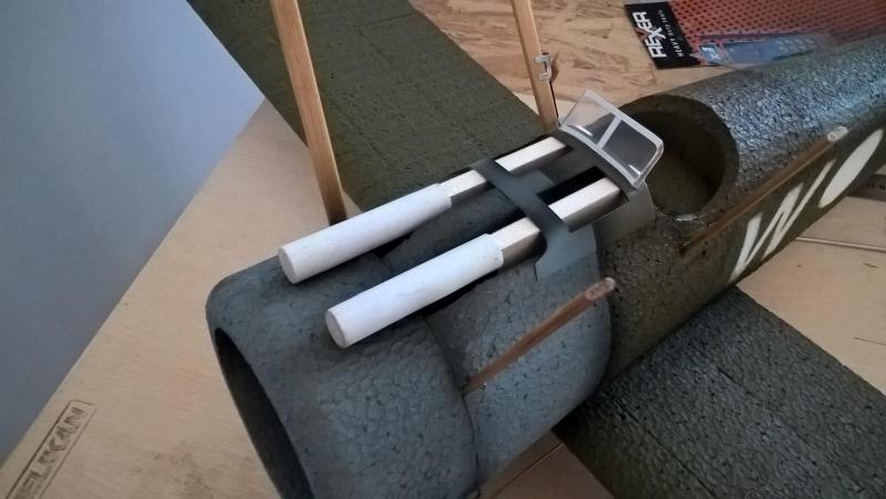 Przed malowaniem wkleiłem dolny płat i zrobiłem w nim otwór na odbiornik. Reszta to tylko przymiarki ale i tak wygląda nieźle. Teraz tylko kupię farby i ognia.
