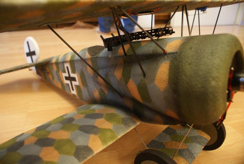 Witam, Nie planowałem budowy nowego modelu w tym sezonie ale ostatnie zawody dały mi do myślenia...Mam wysłużonego już Fokkera Dr I, który kilka razy miał wymieniane płaty, waga zbliża się powoli do określonego w regulaminie maksimum. Świetnie mi się nim lata ale im jest cięższy tym jest trudniej, postanowiłem zbudować nowy model znacznie lżejszy ale o podobnych właściwościach lotnych, najważniejsza jest dla mnie zwrotność, prędkość jest na drugim miejscu. Model który prezentuję to przerobiony Dr I, pozbyłem się jednego płata, kadłub i usterzenie samoloty miały te same. Wybrałem Fokkera D VI. Z malowaniem tylko było gorzej, bo jak tak sobie poczytałem to wyprodukowano tylko około 60 egzemplarzy tej maszyny. Po sukcesie Fokkera D VII mój samolot stał się głównie samolotem szkolnym i właściwie każda sztuka dostała kamuflaż lozenge. Trochę się narobiłem przy szablonach, malowanie zajęło 4 dni ale się opłacało, tam gdzie był utrudniony dostęp malowałem pędzlem, reszta poszła z aerografu. W tym momencie waga do lotu to...666 gramów, pewnie przypadek:) Uznałem, że nie mam sensu po raz kolejny wrzucać pełnej relacji z budowy z tego względu że, pełno podobnych konstrukcji w tym dziale, i moja w zasadzie niczym się od nich nie różni.