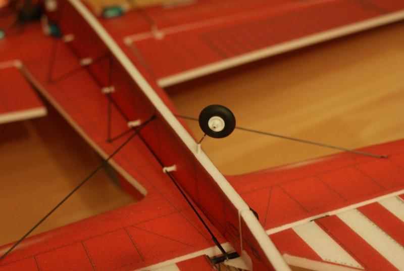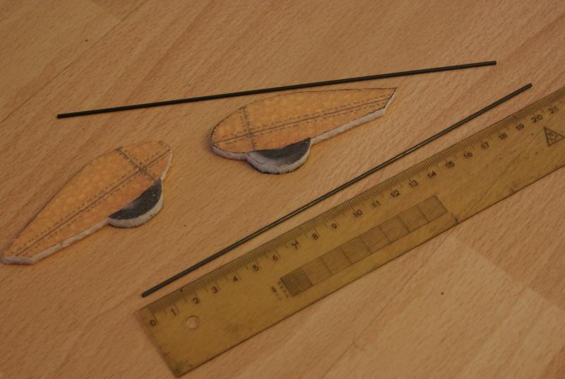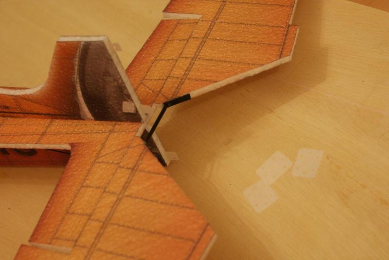 Relacji z budowy ciąg dalszy. Zamierzam jeszcze wzmocnić skrzydła dodając węglową podpórkę łączącą skrzyżowane pręty węglowe (skrzydło-kadłub) z dolną częścią skrzydła, tak aby płat nie uginał się przy odwróconej pętli. Do wykonania owiewek kół wykorzystałem "skrzydłowe zbiorniki paliwa". Na podwozie poszła rurka węglowa średnicy 2 mm. -