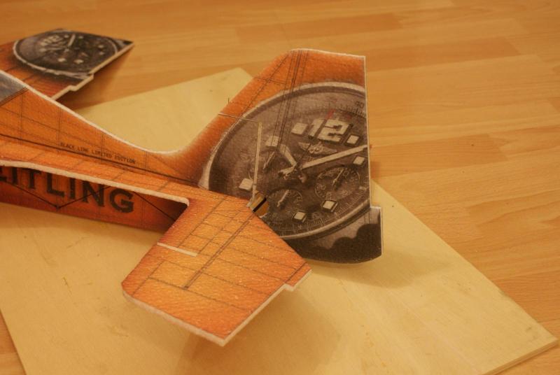 Po krótkiej przerwie pora na małą relację z budowy zlina w wersji zegarkowej. Model jest po drobnych korektach, poszerzona została pozioma część kadłuba w miejscu przejścia w statecznik poziomy. Ster kierunku dostał dodatkowo kilka cm kwadratowych powierzchni. Całość wydrukowana jest na EPP grubości 5 mm. Wybrałem ten materiał ze względu na niską wagę i odporność na nie przewidziany kontakt z matką ziemią. Nauczony doświadczeniem (w przypadku odcięcia silnika) upadek na ogon w zawisie nie boli w ogóle w odróżnieniu od depronu. Kilka szklanych elementów potrzebnych do budowy uzyskałem dzięki pokrojeniu frezowanej płytki co pokazuje jedno ze zdjęć. Skrzydłowe zbiorniki paliwa przerobiłem na kołpaki podwozia głównego. Poniżej zamieszczam kilka zdjęć: -
