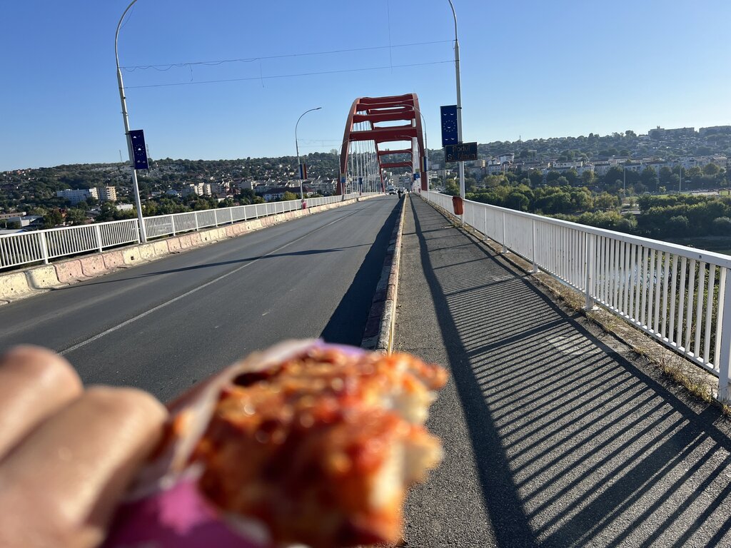 Bedzie Pawelku, bedzie! Moze jednak najpierw skoncze te pierwsza? W sumie to moge poprzeplatac 😊 Wylot byl w czwartek o 22.00 i wszystko odbylo sie zgodnie z planem. Zasnalem zaraz po starcie, obudzilem sie podczas ladowania. Mozna powiedziec, ze ten “sen” uratowal mi noc. W Rumunii czas przesuniety, wiec trace godzine. Autobus podjezdza do samolotu po 30 min. wiec trace pol godziny. Czekam na rower pol godz., trace kolejne pol godziny 😉 Znajduje wozek i po cichutku oddalem sie z tym wozkiem (a na nim z rowerem) w kierunku pensjonatu. Najpierw 300 m pod prad polautostrada, a pozniej terenem dla gravela w kompletnych ciemnosciach! Docieram do pokoju, skrecam rower , wszystko pakuje, tak zeby z rana zyskac KAZDA minute snu. Zasypiam chyba o 3.00, a pobudka o 5.45. Robie szybka kawe, zjadam dwa croissanty (w cenie pokoju), zakladam rekawki, kamizelke , odpalam WSZYSTKIE lampki (na mrugajaco) i wbijam sie w poranny ruch na polautostradzie prowadzacej do miasta. Torbe na rower zostawiam w pralni pod stolem i informuje o tym (SMSem) wlasciciela (mial niby ktos juz byc z rana, ale bylo pusto). Zasuwam z dusza na ramieniu, ale udaje mi sie calo dojechac do stacji Baneasa . Chwile wczesniej oprozniam bankomat Draculi (Banca Transilvania) i zmykam na pociag, ktory podjezdza punktualnie o 7.09 . Na stacji zegnaja mnie oczywiscie miejscowe psy Rower do przedzialu rowerowego , kupuje bilet u pana konduktora i moge sie znowu chwile kimnac. Z rana bylo tylko 8 stopni! Pociag dojezdza do Cernavoda o 8.48. Wysiadam, witaja mnie miejscowe psy, , kupuje kawalek pizzy i zjadam razem z nimi na poczatku mostu. Nie jest to most przez Dunaj, tylko przez Kanal Smierci (Canalul Morții). Jest tak nieoficjalnie nazawany, bo przy jego budowie zginelo (tak sie szacuje) okolo 200 000 wiezniow (z tego wielu politycznych). Prowadzi z Cernavoda do Navodari (polnoc Constanty). Zjezdzam mostem do Cernavoda (bylem tutaj w zeszlym roku, ale jechalem dalej POD prad Dunaju), przejezdzam przez “centrum” (pierwsza wspinaczka dnia) i chce jak najszybciej wyjechac w “dzicz”. Niestety najpierw kilkanascie km asfaltem. Przekraczam drugi kanal, ale tym razem jest to odprowadzenie wody chlodzacej z miejscowej elektrowni jadrowej Dozymetr zazgrzytal, wiec przyspieszylem, zeby sie nie naswietlic. Po kilku km w koncu szutry! Dlugo to nie trwalo, bo przeplataly sie ciagle z asfaltem (zero ruchu). Co chwile 10% podjazdy Mijam ruiny naddunajskiej fortecy z czasow rzymskich I ruszam dalej Psy sa wszedzie! W miastach, na wsiach i na polach! Jadac lasem przy brzegu dojezdzam nagle do rumunskiego Baden Baden! Nad samym brzegiem na skarpie, w basenie, siedza sobie emeryci i grzeja organizmy w cieplej smierdzacej wodzie! Tak polozonych “term” to jeszcze w zyciu nie widzialem 😂 Gdyby mnie czas nie gonil, tez bym sie chetnie wygrzal! Po termach troszke fajnych sciezek! i po kilkunastu km przekraczam Dunaj. Woda ma tutaj wspanialy kolor, zupelnie inny jak w czesci niemiecko-austriackiej! Za mostem wypijam pierwszego browca po nim 5 km betonowa droga , a pozniej wjezdzam na waly i tak sobie waluje kilkadziesiat km, mijajac upadle cuda rumunskiej techniki No i nagle czuje ze z przodu lapie gume. Goraco jak w piekle, ale trza wymienic detke! Wymieniam, chce wsiadac , a z tylu tez flak 😳 Wyjmuje kilka malych kolcow z opony, wrzucam druga detke (mam jeszcze jedna), a dziury postanawiam pozaklejac pozniej. Jade moze z 5 km, kolejny kapec. Poniewaz lapie go akurat pod gospodarstwem przy walach, “pukam” do ludzi, zeby uzyczyli wiadra z woda. Na migi tlumacze o co chodzi i razem z gosdpodarzami zaczynam latanie i proby w beczce z woda. W kazdej po 2- 3 dziury i latki znikaja w strasznym tempie! Gospodyni cos mowi do pana gospodarza, on podnosi dupsko i przynosi zestaw chyba z 20 latek 🤩 Odrywa mi 5 i pomaga zalatac ostatnia z detek. Kury pieja, kozy becza; sielanka! Na migi mowi mi, zebym nie jechal walami, bo sie “zakolcze” na smierc. Obieram kurs alternatywny, ale juz po 3 km lapie kapcia! Wiem, wiem. Za chwile odezwa sie “mleczarze”, ze to by sie z mlekiem NIE zdarzylo 😄 Nie wyjalem chyba wczesniej wszystkich kolcow, wiec sie dzieje! Biore scyzoryk i wydlubuje jeszcze chyba 10 kolczykow! Zakladam detke i jade w kierunku miejscowosci Braila, gdzie ma byc sklep rowerowy (chce kupic latki, klej i detki!). Zap…am 30, mimo ze wiatr mam (dosc silny) w twarz, bo MUSZE zdazyc do 18.00. Kilometry ciagna sie niesamowicie, tym bardziej, ze napisali mi patykiem na piasku, ze jest 28 km, a dopiero po siedmiu jak skrecilem na “glowniejsza” to byl szyld 40 km!!! 😳 Dojezdzam do Braila o 17.48 i wtedy okazuje sie ze sklepem rowerowym byl DECATHLON otwarty do 20.00 😁 Ledwo stojac na nogach kupuje co potrzebuje wypijam ze 3 fanty winogronowe i niespiesznie zawijam sie dalej. Do Galati mam okolo 25 km. W duzym namiocie swoje wdzieki prezentuje Monica Belucci , wiec wchodze popatrzec, ale musze zmykac, bo slonce bardzo szybko schodzi w dol! Wyglada ZJAWISKOWO jak zwykle Monica, nie slonce) 😍 Bokami do Galati i w oddali ukazuje sie miasto polozone na naddunajskim wzgorzu. Staje na rogatkach przy jakims kanale i znajduje nocleg. Przejezdam przez miasto i okazuje sie, ze spie (samotnie) w chyba 80 metrowym apartamencie! Przybytku pilnuje “grozny” stroz Szybka prycha i zmykam JESC (caly dzien na dwoch ciasteczkach i kawaleczku porannej pizzy, ktorej wiekszosc dostaly psy). Zamawiam troszke grilowanych rzeczy i podwojne fryty. Dostaje dobrze ponad kilogram zarcia (ta zolta kostka, to mamalyga). Piwa nie maja, wiec kupuje w sklepiku obok i dostaje pozwolenie na wypicie w knajpie. Pozniej ide jeszcze do sklepu, biore troszke slodyczy i kompot czeresniowy + 2 l wody na noc. Zasypiam momentalnie po umyciu zebow. 176 km, 900 m w pionie i CALY dzien pod mocny wiatr! Temperatura 26 stopni (tylko z rana w Bukareszcie “przypizgalo”).