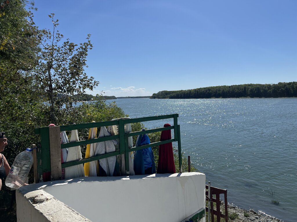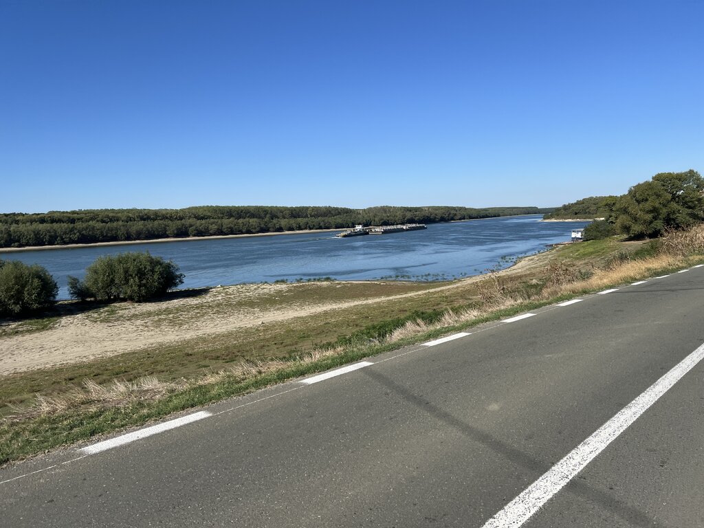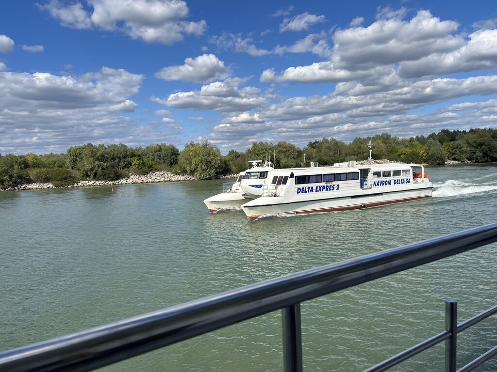 Pospalem calkiem niezle, choc pospalbym ze dwie godzinki dluzej, ale zycie jest niestety brutalne. Moj prom na druga strone Galati odplywa o 7.30, a musze zdazyc do Tulcea (90 km) na statek, ktory plynie o 13.30. Wole miec troszke luzu, kosztem snu . Zrywam sie wiec o 6.30, zjadam zakupione wczoraj wafelki popijajac kompotem, toaleta i nie ubierajac sie w zadne dodatkowe rzeczy (jest juz 18 stopni) jade w kierunku promu. Piekny wschod slonca nad Galati i tylko niecale dwa kilometry do przeprawy. Prom robi juz drugi kurs dnia, wiec podplywa z drugiej strony wjezdzam, stawiam rower i ide kupic bilet (5 Lei). Przeprawa zajmuje okolo 25 minut. Na srodku Dunaju stoja dziesiatki zakotwiczonych barek, czekajacych na rozladunek w miejscowym porcie Doplywamy do brzegu i od razu po 200m wskakuje na waly. Po drugiej stronie majaczy skapane we wschodzacym sloncu Galati Ja w kazdym ostro “waluje” wiele kilometrow. Nic ciekawego sie nie dzieje, kolcow w oponach na razie brak Czesto widac opuszczone chalupy. Widac, ze Rumuni TEZ albo uciekaja z kraju, albo wyprowadzaja sie do miast, zostawiajac swoje “posiadlosci” . Po lewej stronie piekne widoki na Dunaj ", ktora po wymarciu pozostawia domy ku upadkowi. Wskakuje na asfalty I przejezdzam obok JEDYNEGO w Unii szpitala dla tredowatych Tichilești – Wikipedia, wolna encyklopedia Naturalnie przyspieszam i przestaje na chwile oddychac Po lewej stronie piekne widoki na Dunaj i na lezaca za nim Ukraine. Droga jedzie wiele ukrainskich tirow, ktore przekraczaja granice w Tulcea (prom). Ja dojezdzam do miejscowosci Isaccea i widzac, ze mam spory zapas czasu staje na sniedanko i piwko. Tym razem lane! Zamawiam sandwicha, ale dostaje dwa. Jest to kajzerka (na cieplo) z grilowana piersia kurczaka, serem, jakas zielenina i sosem. Zjadam spokojnie obserwujac klotnie dwoch zuli nieopodal knajpy. Mijam meczet, co swiadczy o tym , jak bardzo mieszaly sie tutaj rozne kutury Jadac dalej, trafiam na winobranie. Staje i zostaje zaproszony na probe zbiorow Mijam szyld, ktory przypomina mi GDZIE jestem Winnice ciagna sie kilometrami! Z innych owocow, najczesciej widuje sliwki (ale to juz koncowka). Mijam posterunek policji i po kilkunastu kilometrach wjezdzam do Tulcea. Na poczatek postanawiam znalezc port, zakupic bilet na moj statek i spedzic gdzies reszte czasu (jest dopiero 12.15) IMG_99701920×1440 170 KB Moj statek stoi juz przy nabrzezu, kupuje bilet (60 Lei), a za rower (10) doplace pozniej na statku. Na wszystko dostaje bilety! Jade najpierw na loda (robi pani Rumunka). Lod drogi i wodnisty, do tego dwa razy mniejszy jak w domu. Pozniej znajduje knajpe z lanym piwem. Zamawiam jedno zamawiam drugie i biore jeszcze slynne rumunskie paczki serowe PAPANASI Ciorba de burta (flakow) nie mieli Po spozyciu jade powolutku w strone statku i laduje sie nan z rowerem. Przebieram sie w “cywilki” i zasiadam na pokladzie. Rusza punktualnie o 13.30. Rejs zajmie 3 godziny 45 minut. Plyniemy srodkowa odnoga Dunaju, ktora nazywa sie Bratul Sulina. Jest jeszcze gorna (na granicy z Ukraina ) i dolna. Dolna NIE jest zeglowna dla duzych statkow! Piekna pogoda i piekne widoki. Po drodze zawijamy doi kilku portow, w ktorych ludzie i wsiadaja i wysiadaja, taszczac ze soba olbrzymie toboly. Mijamy statek pelen owiec Mijamy “szybki” statek Plyniemy dalej, a mi zaczynaja sie walic powieki. Wypijam browca i zapadam w gleboki sen Budza mnie podniesione glosy i okazuje sie, ze doplynelismy do celu podrozy, czyli Suliny! Przespalem prawie 1,5 godziny! Zakladam buty (nie przebierajac sie) i jade w strone ujscia Dunaju do Morza Czarnego. Wyjezdzam z Suliny i mam okolo 6 km szutrami. Droga robi sie coraz wezsza konczac sie nagle i przechodzac w podmokle pastwiska. Prowadze wiec rower idac w strone morza Mijam krowy wesolo do nich “muczac”. Gdy sie do nich zblizam, okazuja sie BYKAMI Brne dalej, czujac pod nogami wode. Dochodze do momentu gdzie dalej isc sie nie da (podmokly treren), ale widze przed soba budynek, ktory wg mapy lezy przy ujsciu Niestety dalej sie nie da! Do budynku tylko woda. Tutak KONCZY sie moj Dunaj. Nie mam cisnienia isc dalej, bo mialem go przejechac rowerem, a dalej nie ma drogi. W oddali widze statki, czekajace na wejscie “w rzeke” Zawracam i tym razem ostroznie przechodze kolo bykow. Pasa sie tutaj dziesiatki koni, ktore hasaja sobie zupelnie wolno! Klimat niesamowity. Wracam w strone Suliny, ale zanim wjade do miasta, jade sie wykapac w Morzu Czarnym. witaja mnie oczywiscie miejscowe psy Plaza prawie zupelnie pusta. Woda ma 22 stopnie. Zamawiam browca i wznosze toast za zakonczenie DUNAJSKIEJ WYPRAWY Po wypiciu i wyschnieciu wracam do Suliny szukac noclegu. Znajduje szybko (prawie w centrum) , biore pryche i zmykam podsumowac koniec podrozy rybka z Dunaju. Sulina jest klasycznym UPADLYM miastem. Dziesiatki bezpanskich psow i klasyczny klimat KONCA SWIATA Jedynie knajpy jakos wygladaja. Zamawiam suma + piwko i racze sie niespiesznie posilkiem w towarzystwie restauracyjnego kota, a po posilku udaje sie lulu. 100 km rowerem i z 80 statkiem CDN