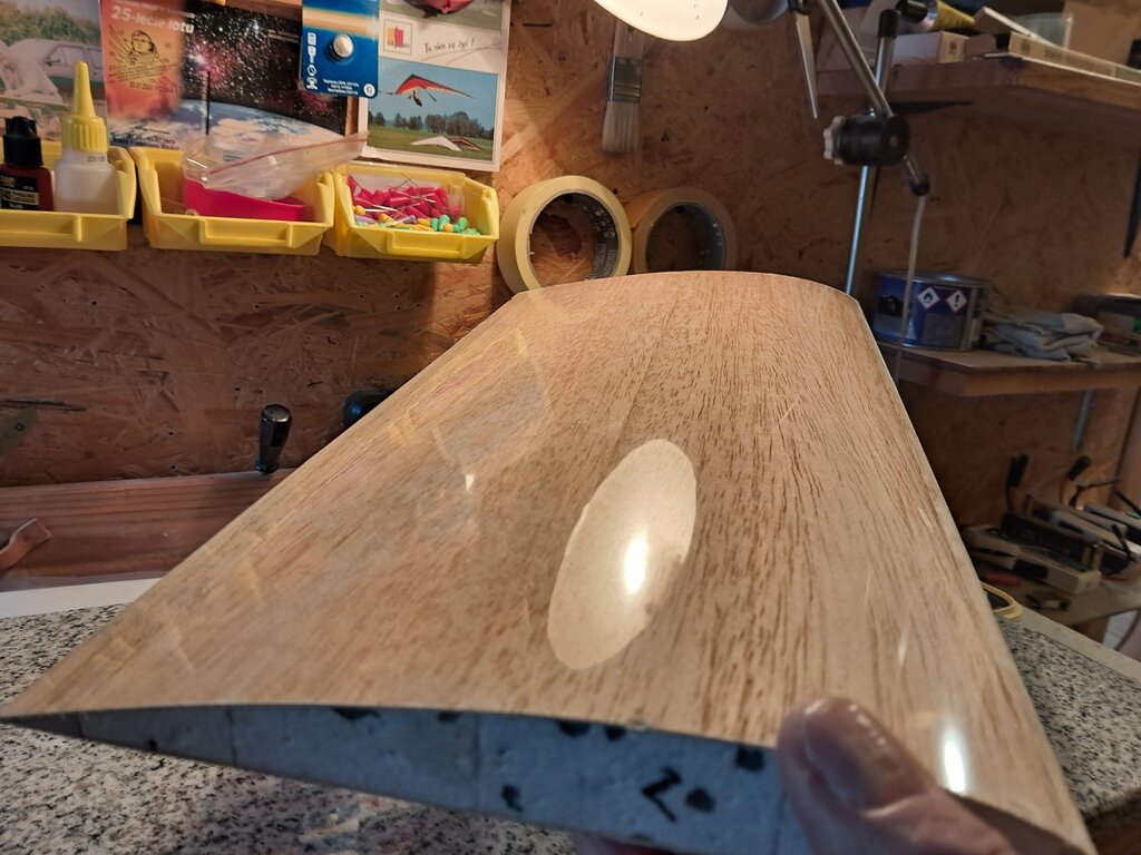 Nie wiem czy dobrze zauważyłem: wręga nr 2 jest z samej balsy? Jeśli tak warto ją wzmocnić sklejką 0,4mm lub tkaniną szklaną np. 48g/m2. Powodzenia , działaj dalej. Najważniejsze ,że chce Ci się chcieć.